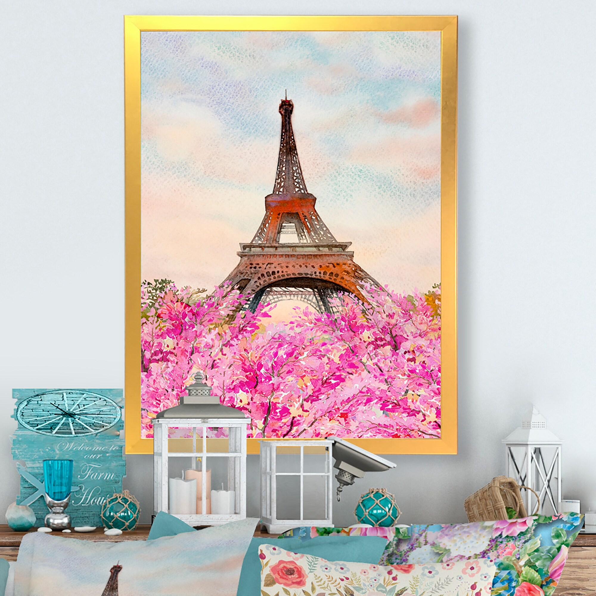 Designart "Summer Paris France Eiffel Tower II" Traditional Framed Art Print