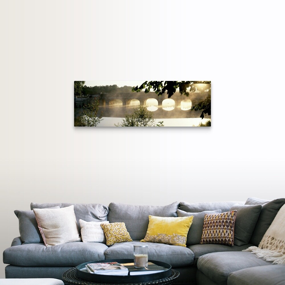 "Stone Bridge in Fog Loire Valley France" Canvas Wall Art