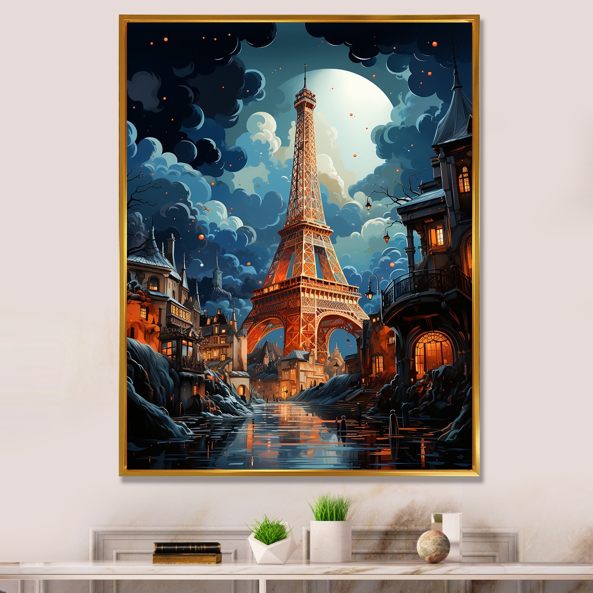 Designart "The Eiffel Tower Suralism II" France Framed Wall Art Prints