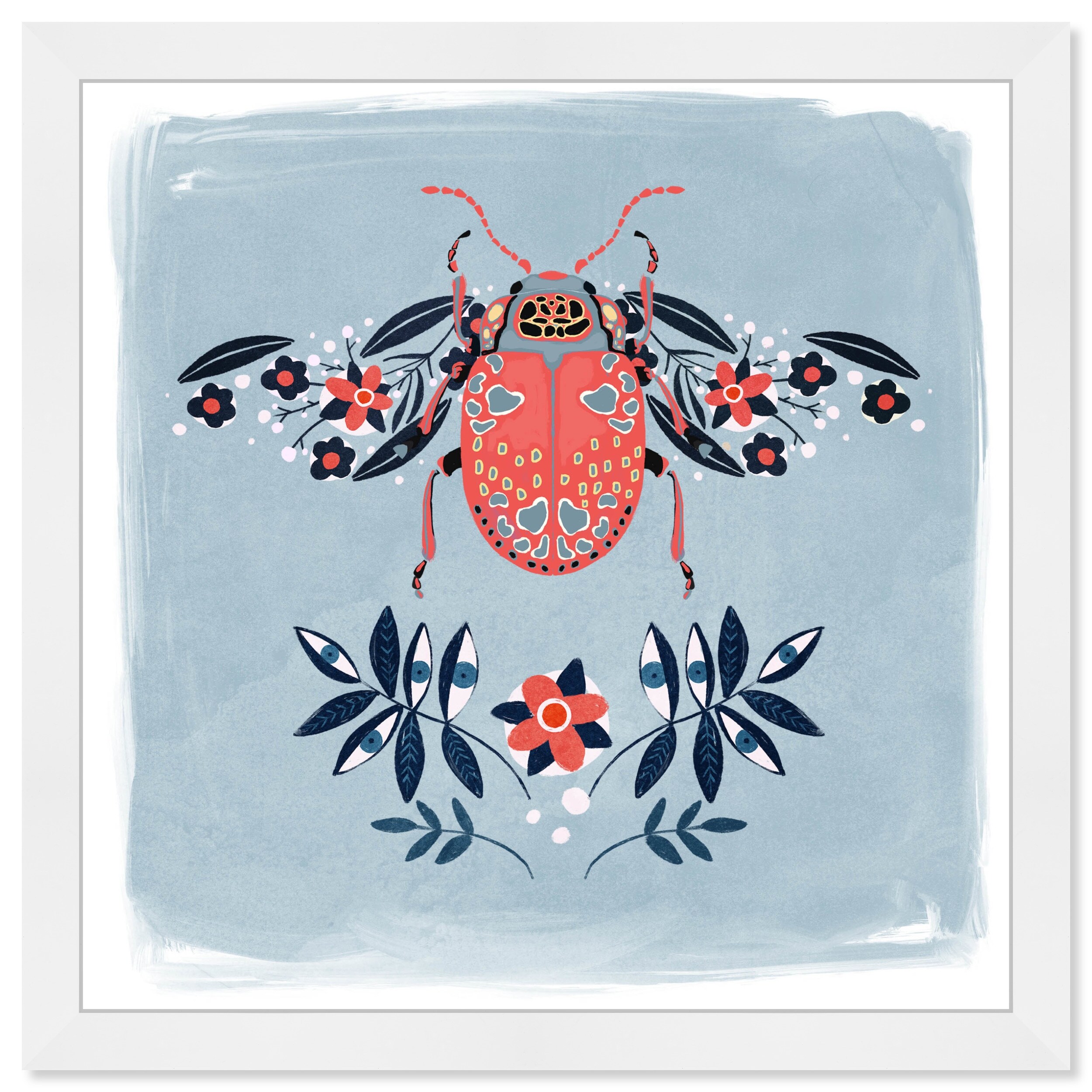 Oliver Gal 'Modern Feminine Flower Beetle' Floral And Botanical Blue Wall Art Canvas Print