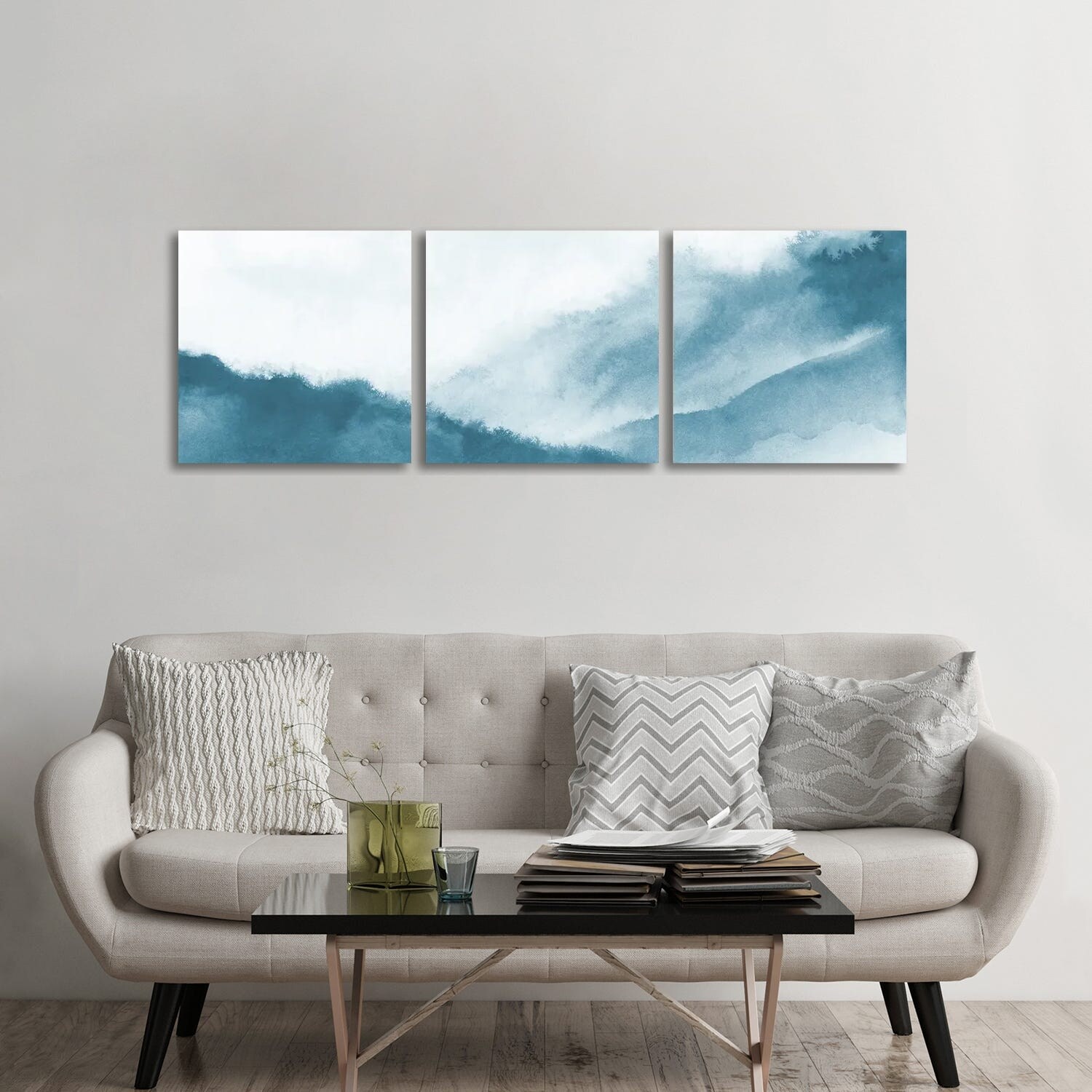 iCanvas "Misty mountains in teal watercolor - Panoramic" by Nouveau Prints 3-Piece Canvas Wall Art Set
