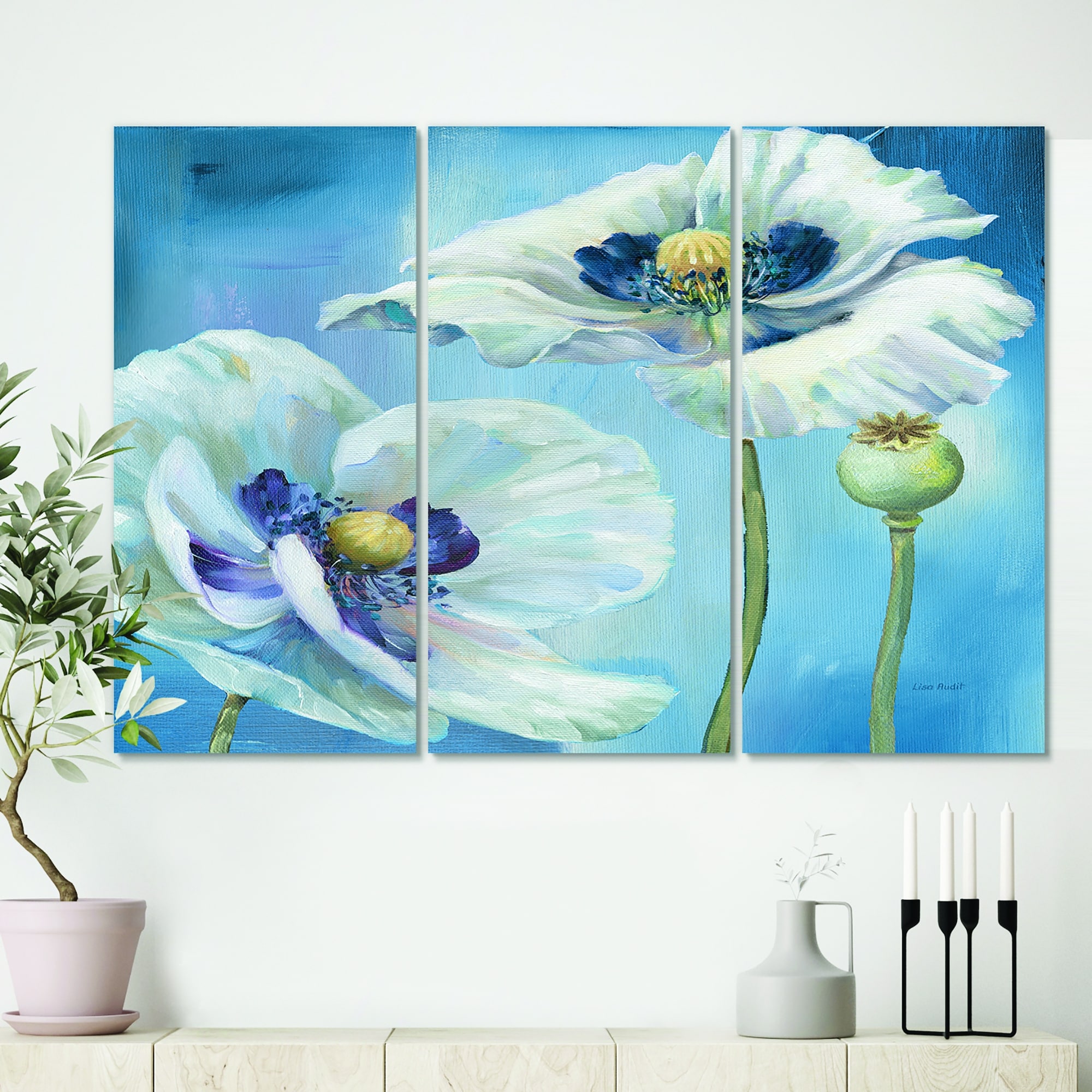 Designart "White Flower on Blue I" Farmhouse Canvas Art