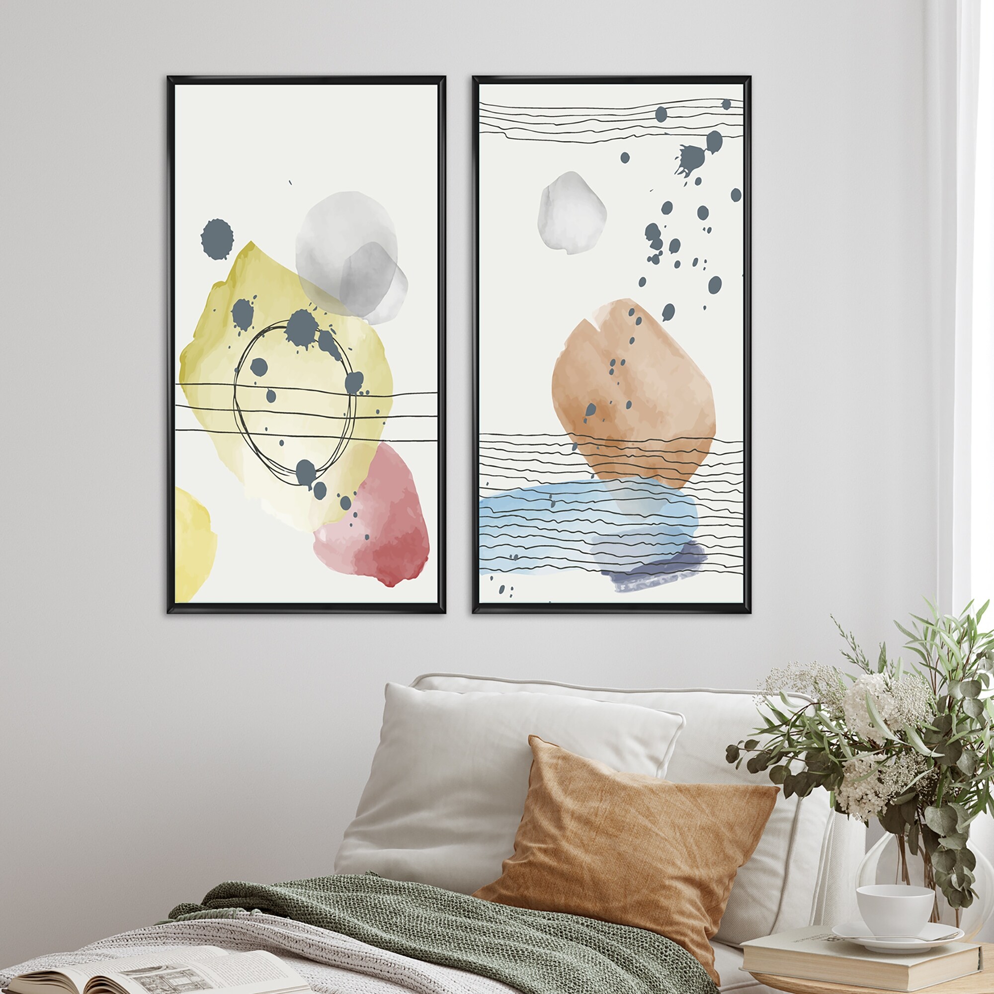 Designart "Trendy Abstracts With Vibrant Organic Shapes I" Geometric Framed Art Set of 2 Pieces