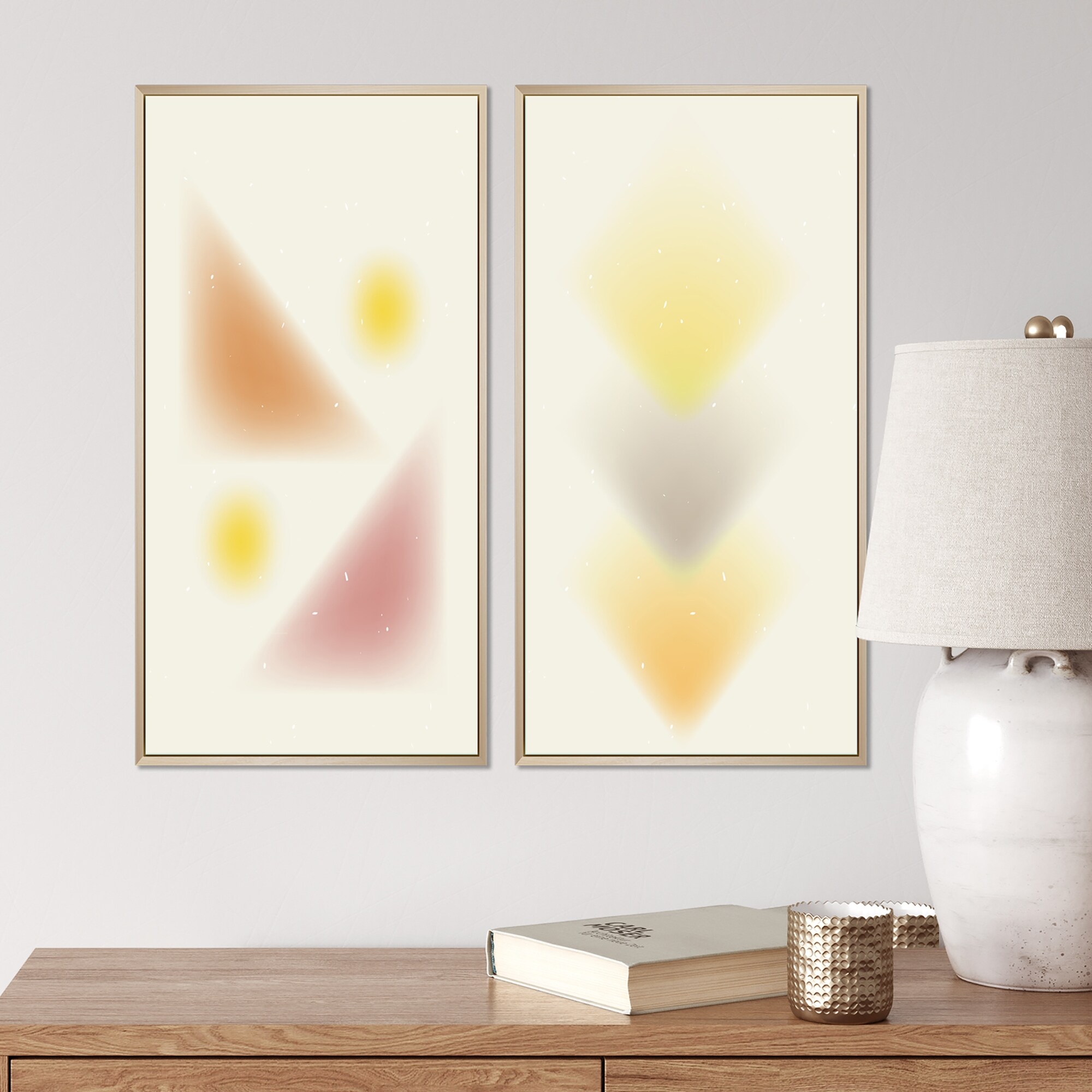 Designart "Minimalistic Retro Color Geometrics VI" Geometric Framed Art Set of 2 Pieces