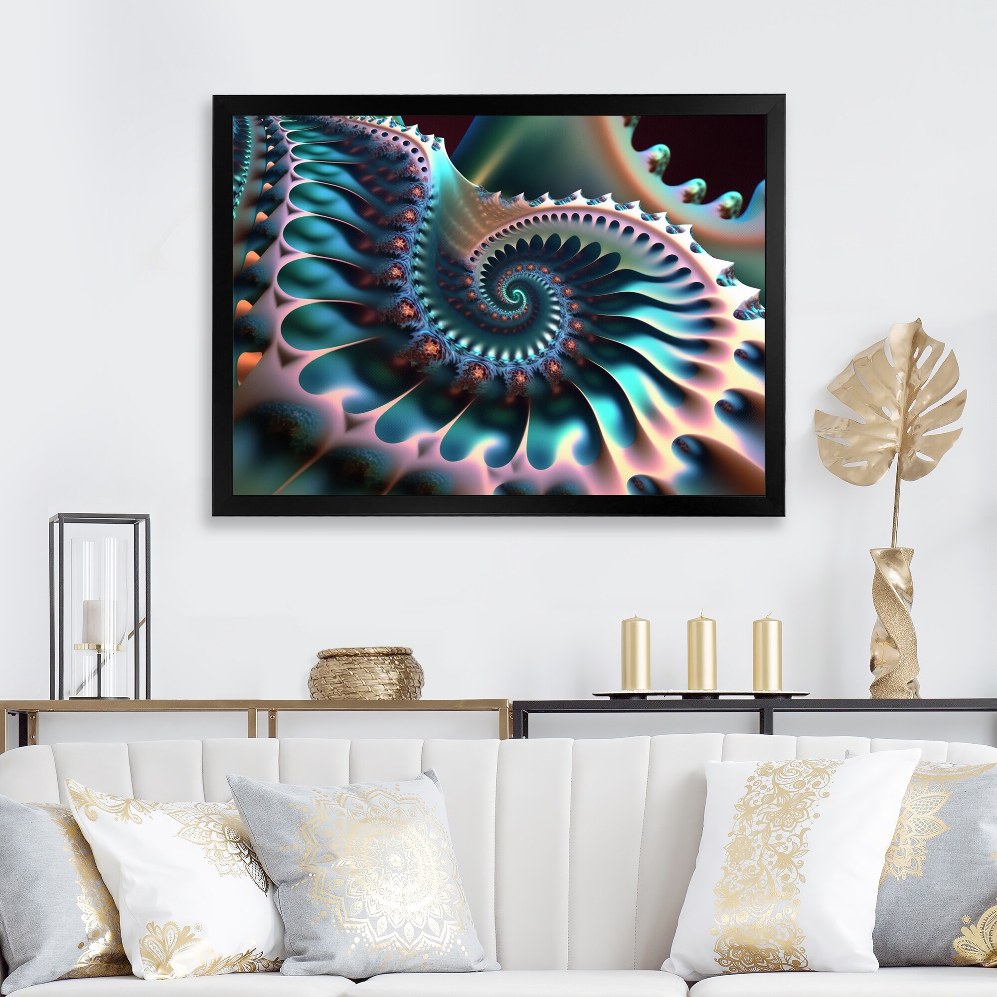 Designart "Pastel Fractal Spiral Universe VI" Modern Geometric Framed Art Print