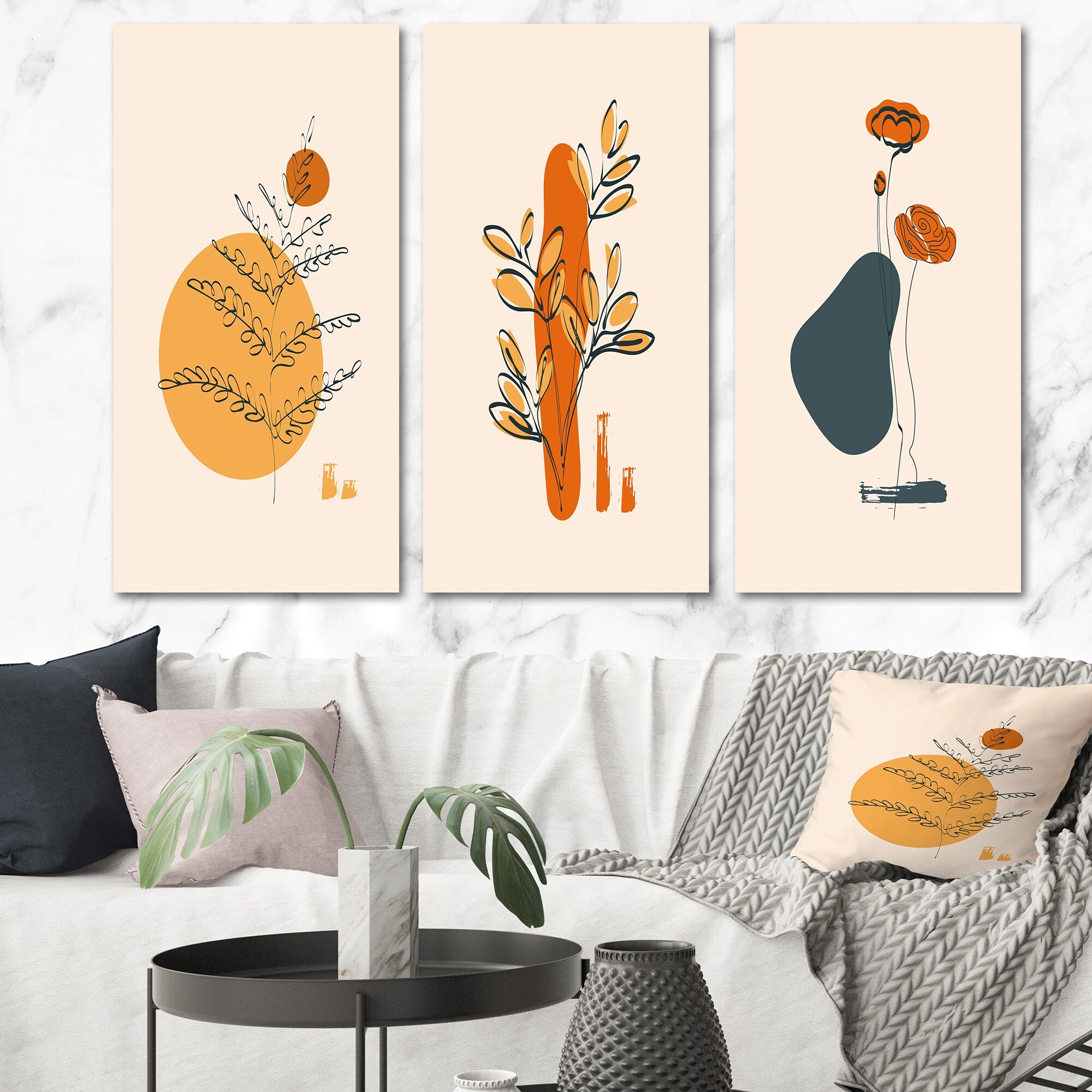 Designart 'Cactus And Leaves Minimalism I' Transitional Art Set of 3 Pieces