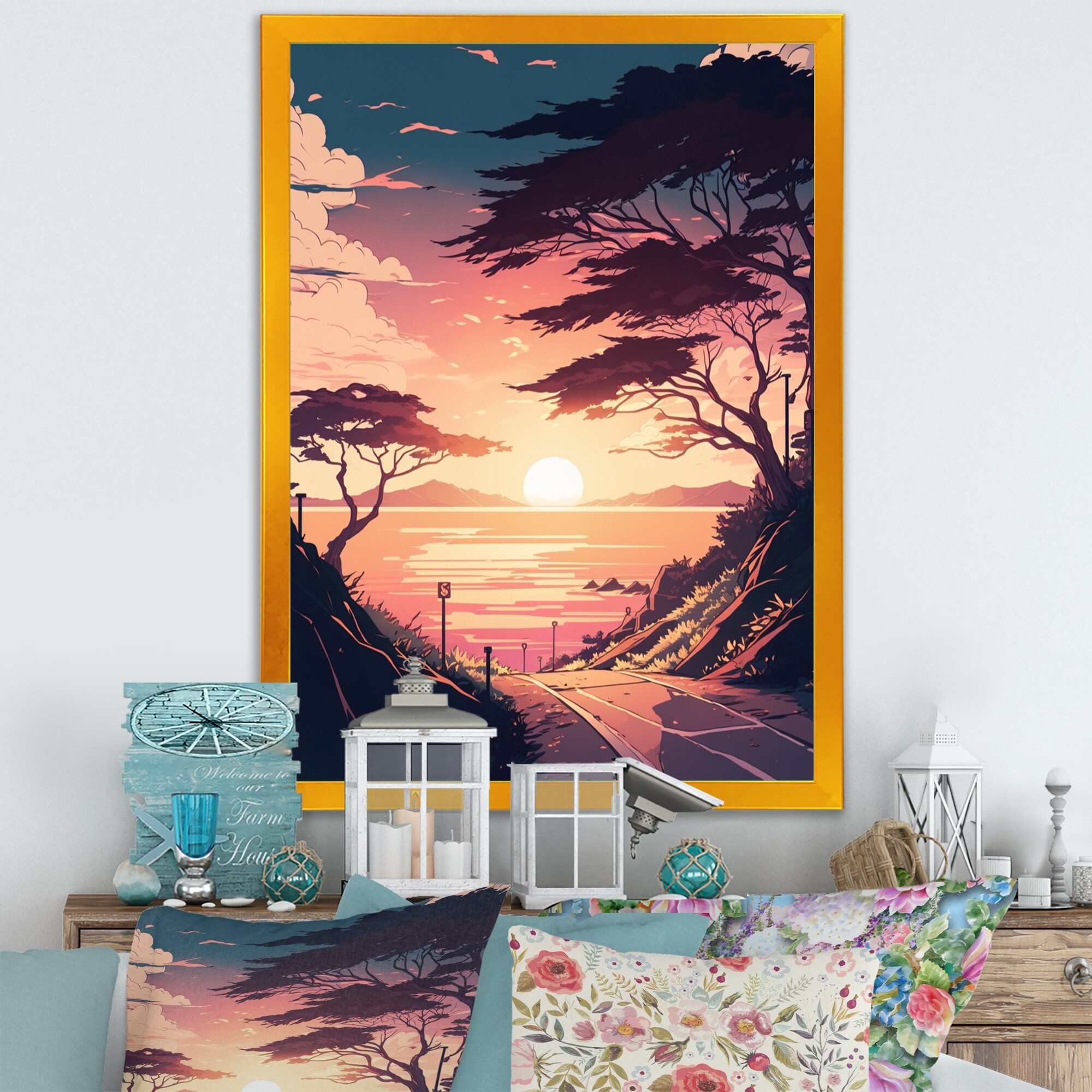 Designart "Road To the Sunset VII" Landscape Framed Art Print