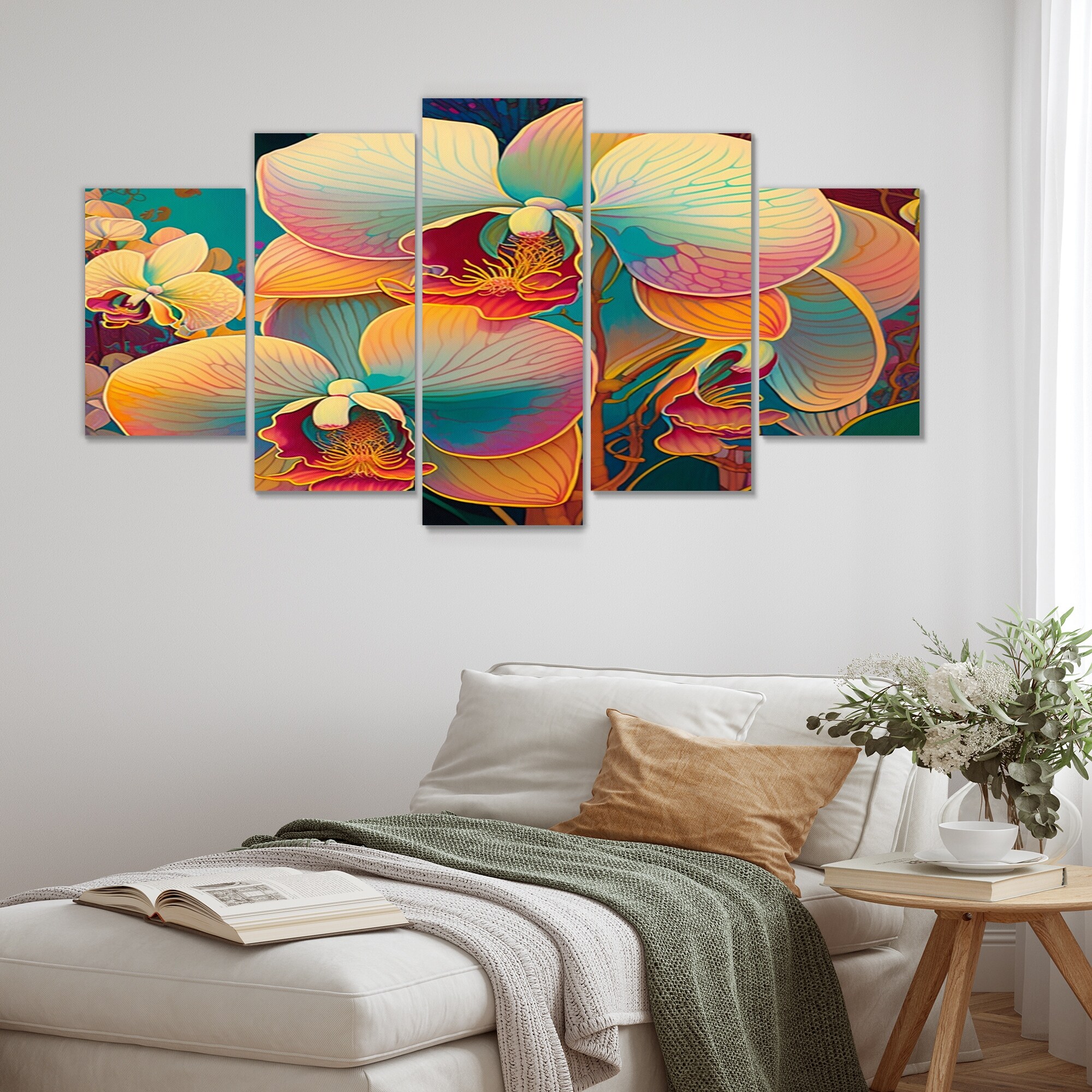Designart "Blossoming Orchid in Bright Retro Colors I" Floral Orchid Multipanel Canvas Art Print