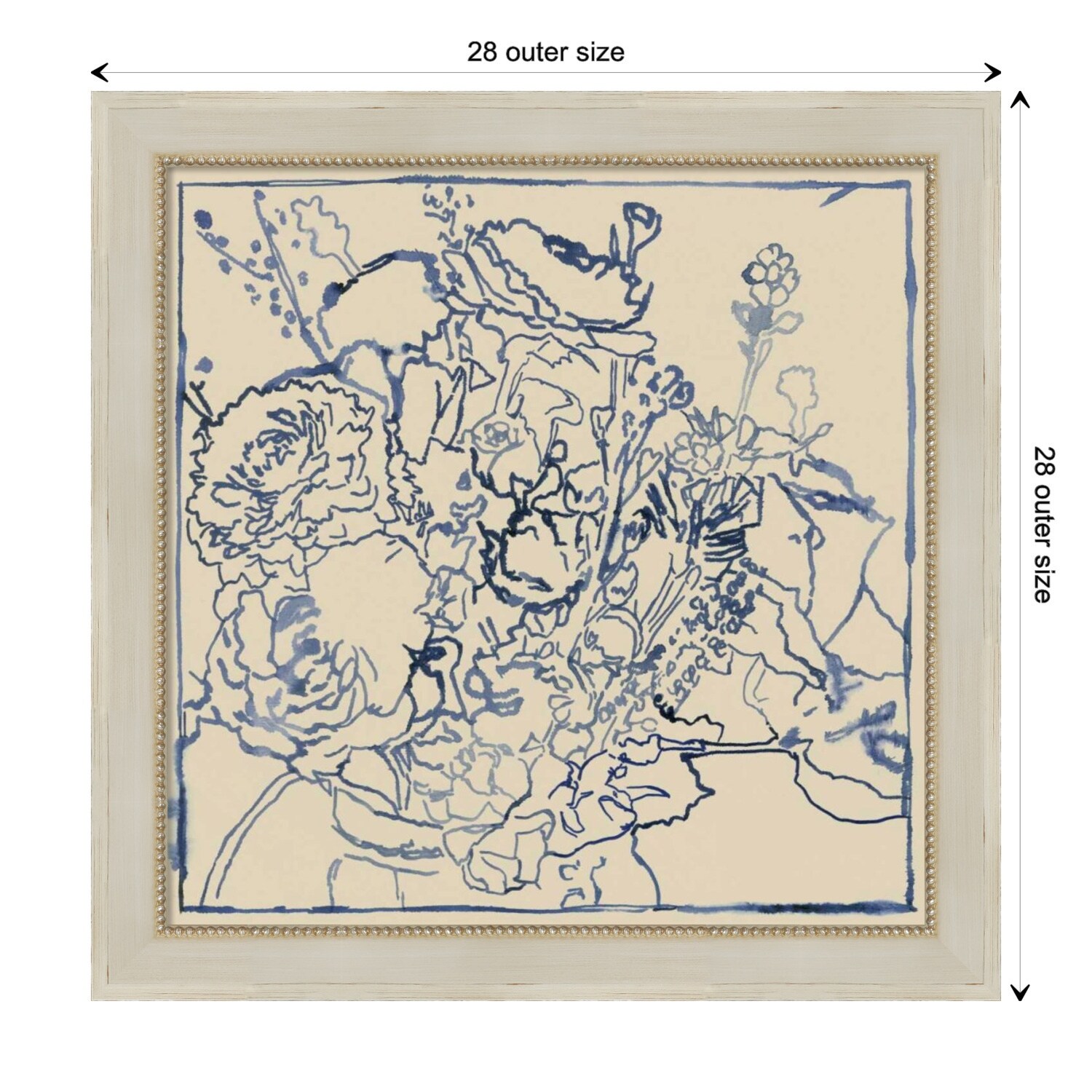 Indigo Floral Sketch I by Megan Meagher Wood Framed Wall Art Print - Parthenon Cream