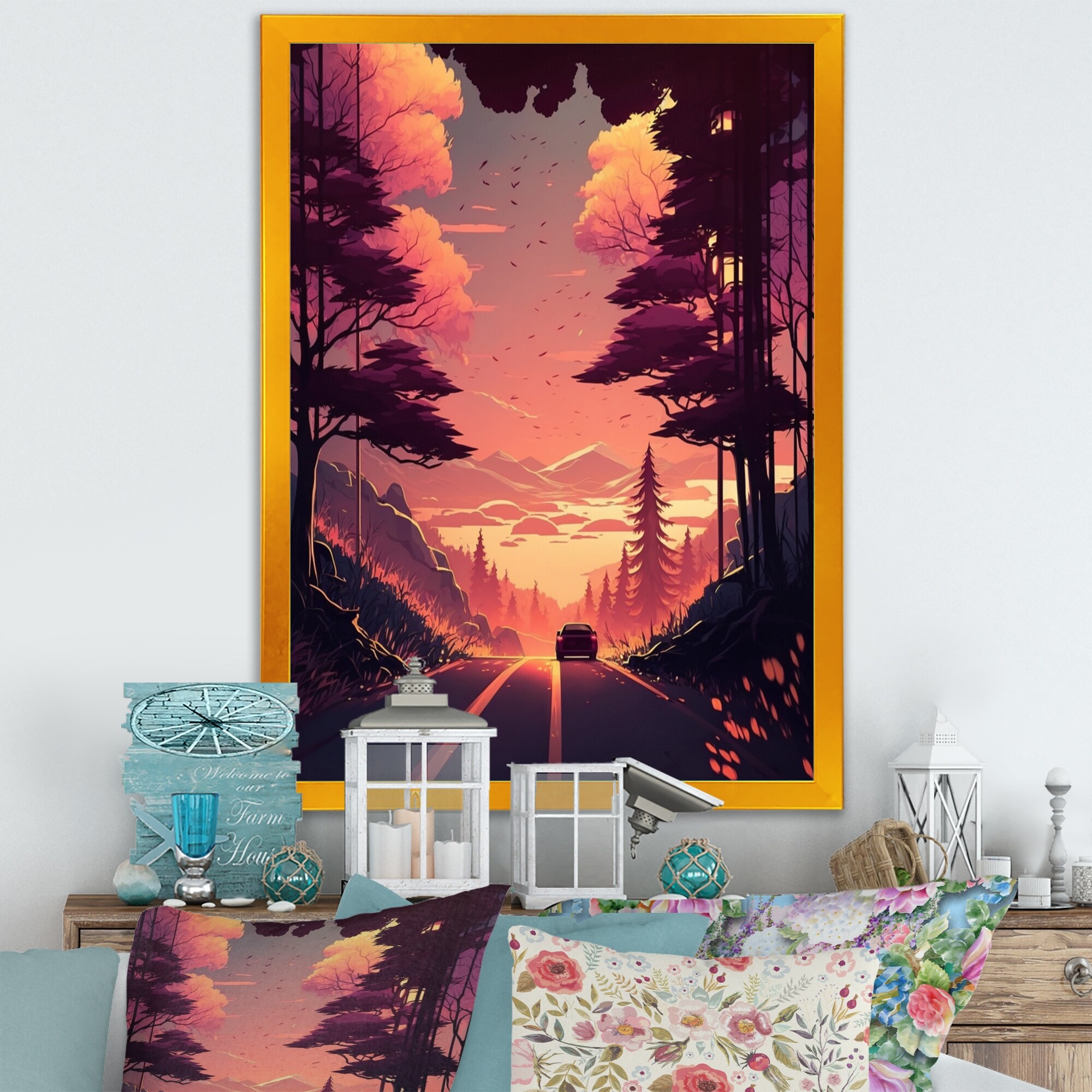 Designart "Road To the Sunset IV" Landscape Framed Art Print