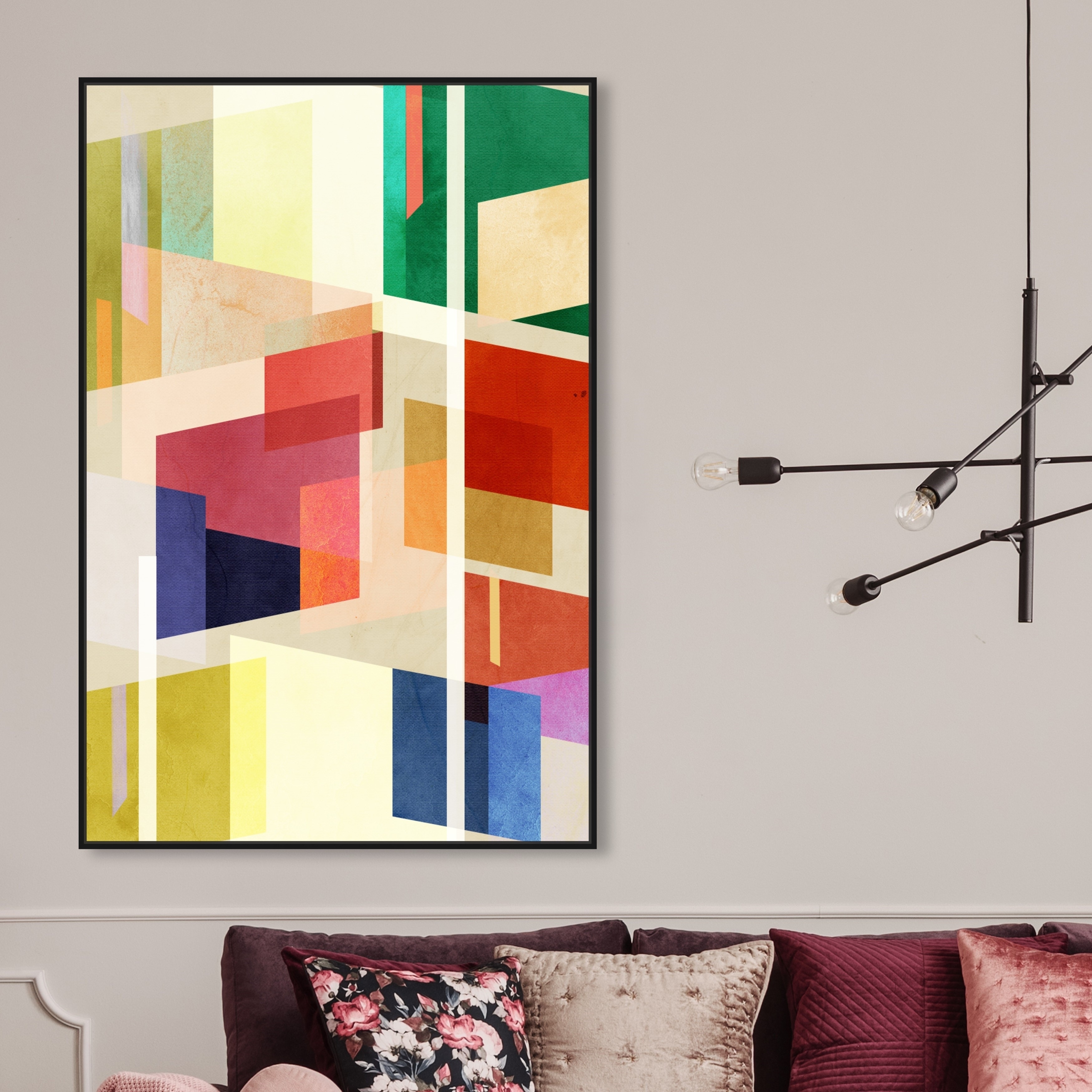 Oliver Gal Abstract Wall Art Framed Canvas Prints 'Midcentury Square Abstract' Geometric - Yellow, Green