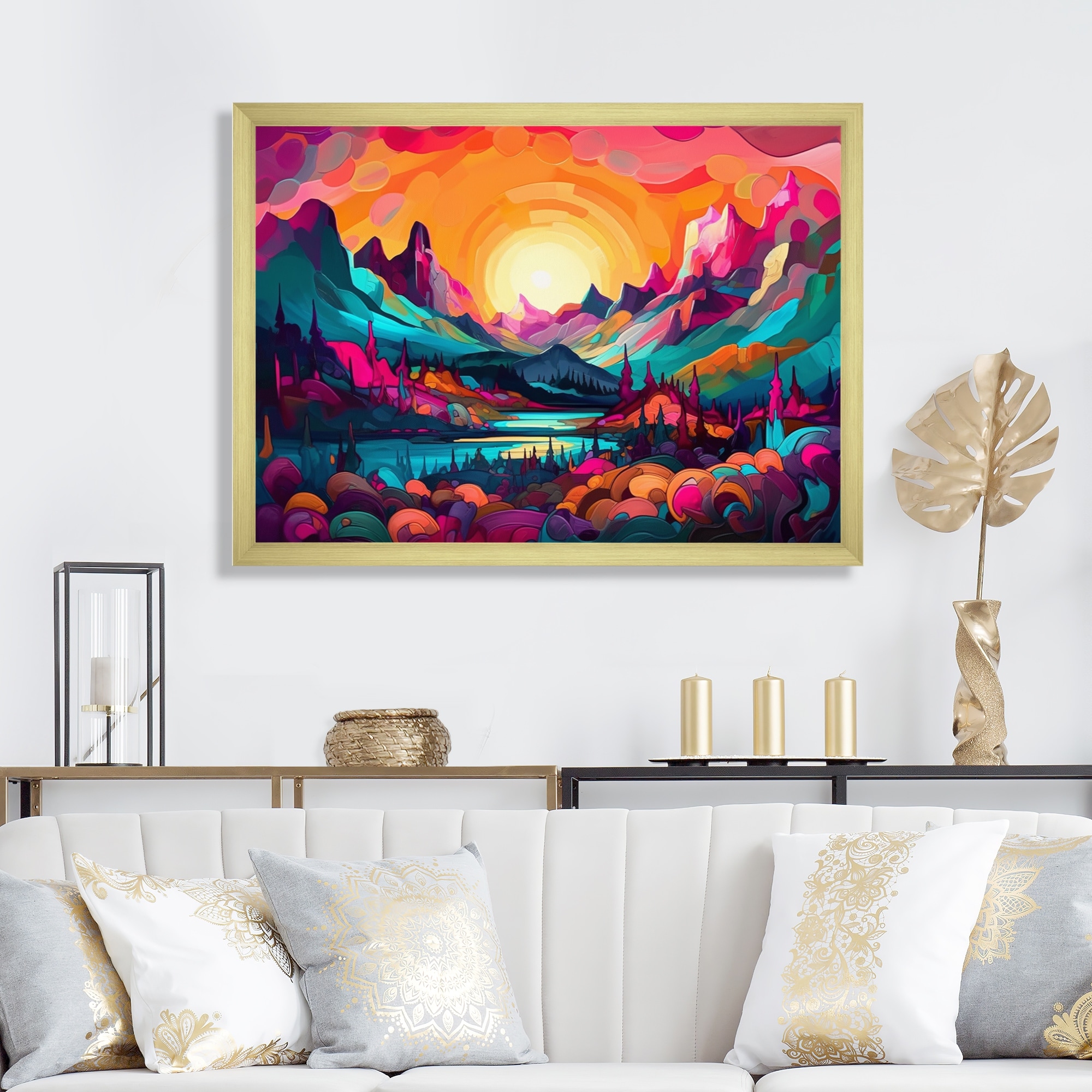 Designart "Vibrant Sunset Shining Over Mountains Iii" Landscape Mountains Framed Wall Art for Living Room