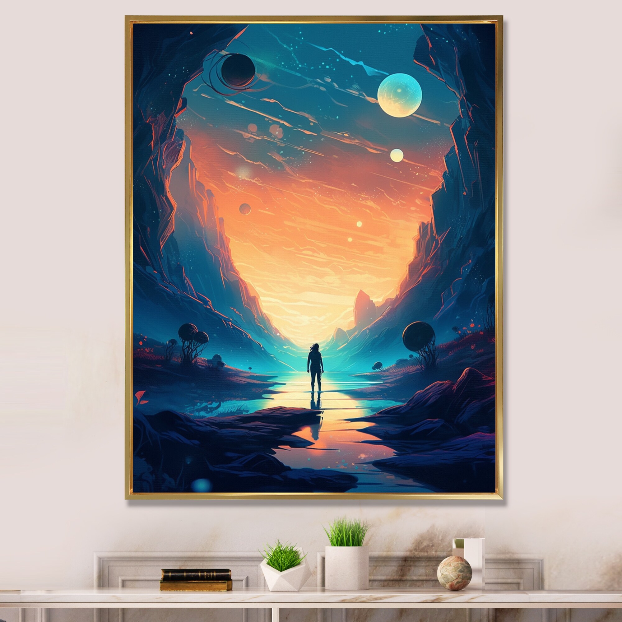 Designart "Imagine Space Iv" Space Framed Canvas Art Print