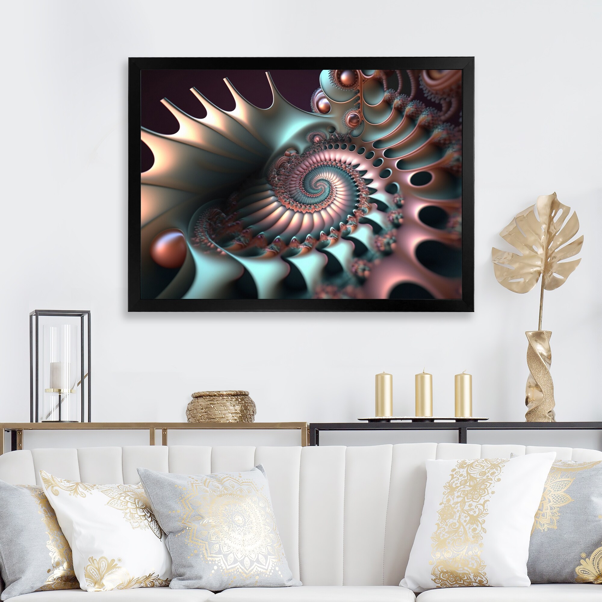 Designart "Turquoise And Pink Fractal III" Modern Geometric Framed Art Print