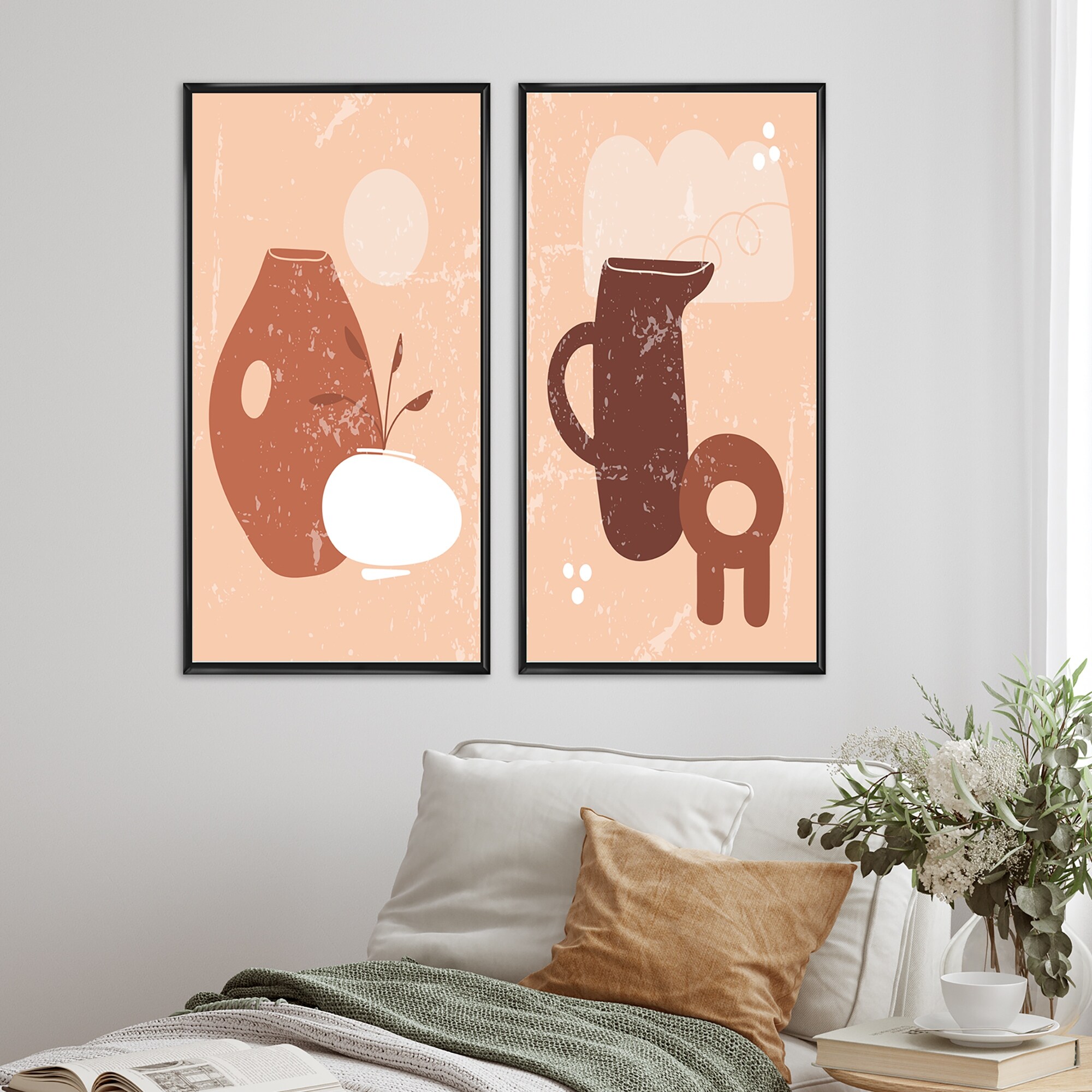 Designart "Elegant Vase Illustrations in Retro Colors I" Abstract Framed Art Set of 2 Pieces