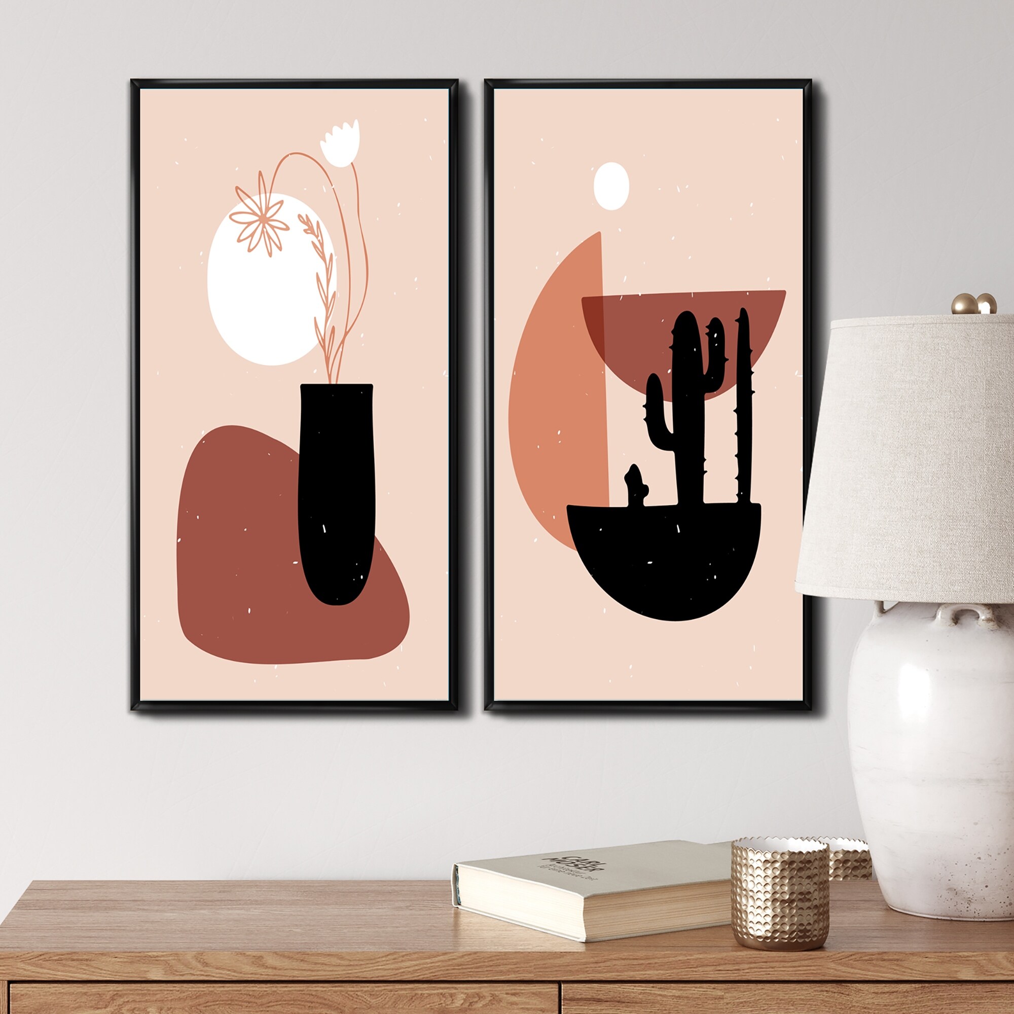 Designart "Tropical Vintage Cactus Geometrics I" Abstract Framed Art Set of 2 Pieces
