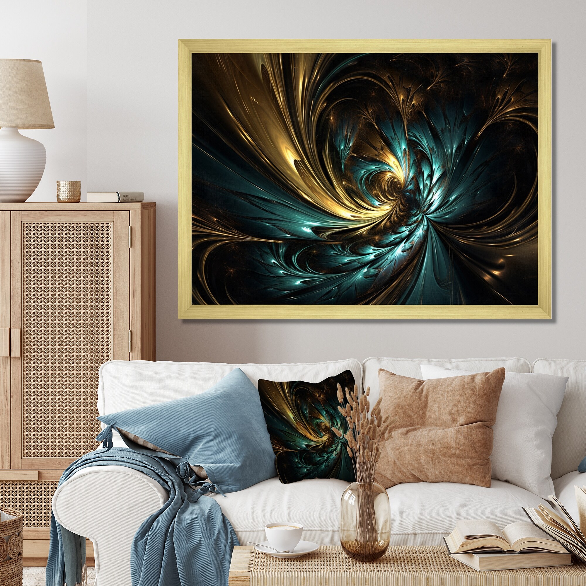 Designart "Blue And Gold Fractal Enigmas Ii" Abstract Fractal Framed Wall Art Prints