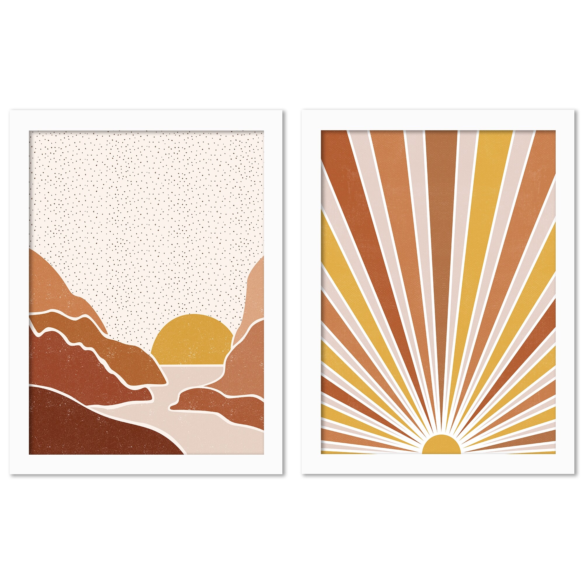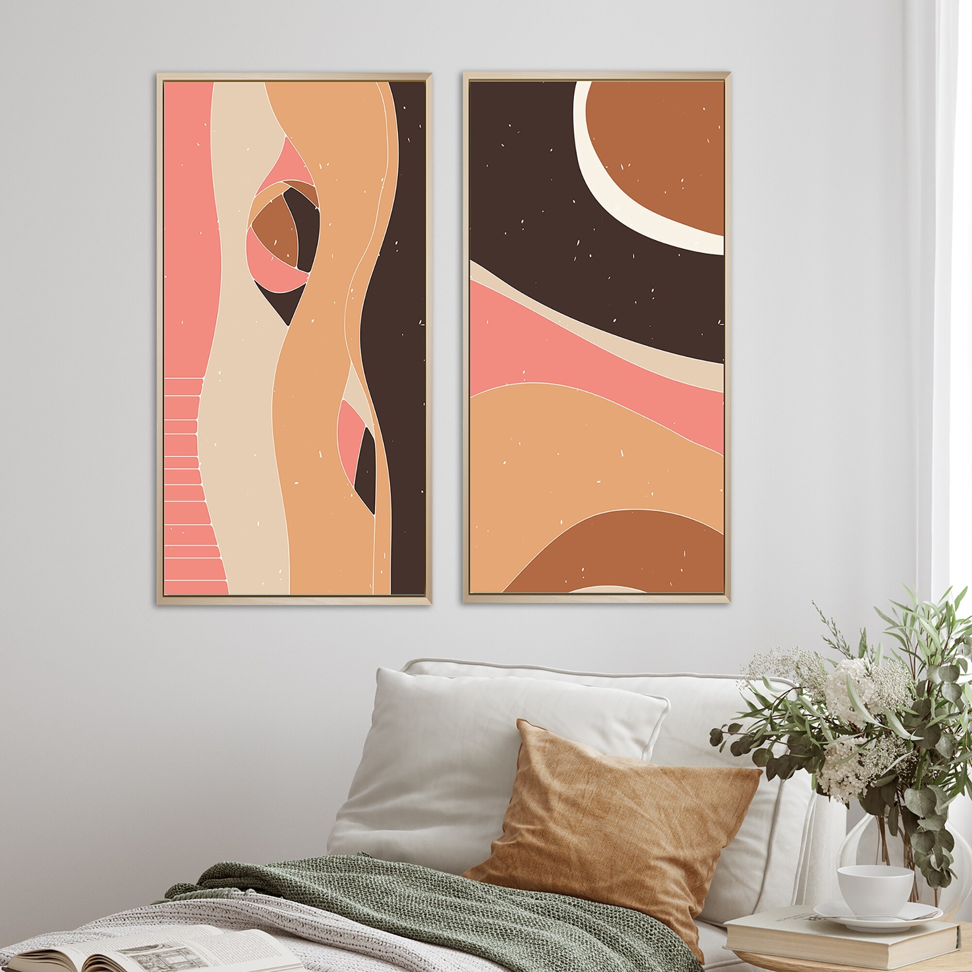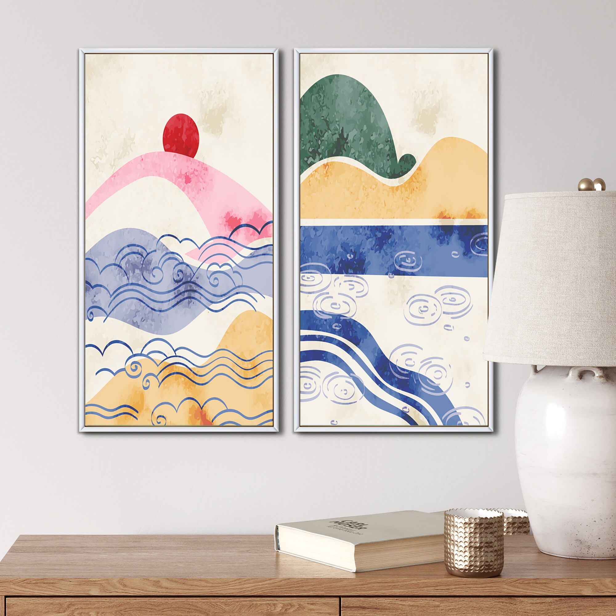 Designart "Retro Abstract Colorful Landscape Design V" Abstract Framed Art Set of 2 Pieces
