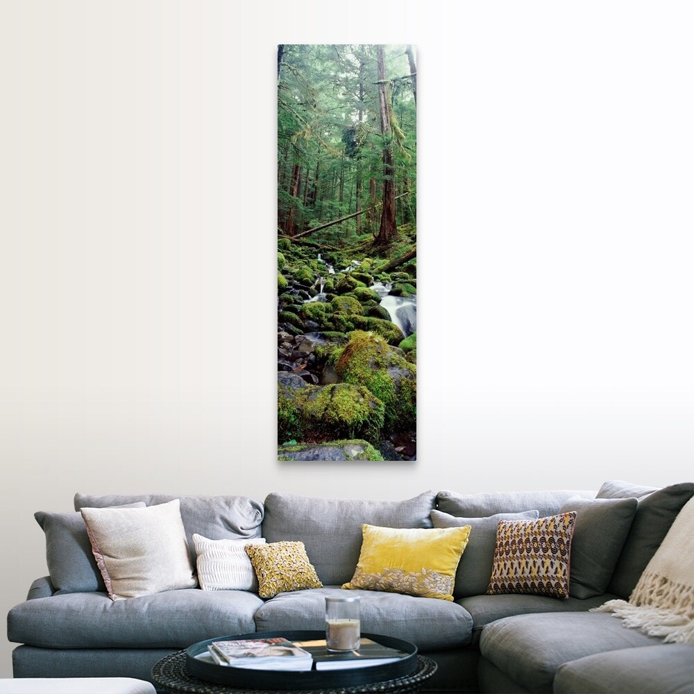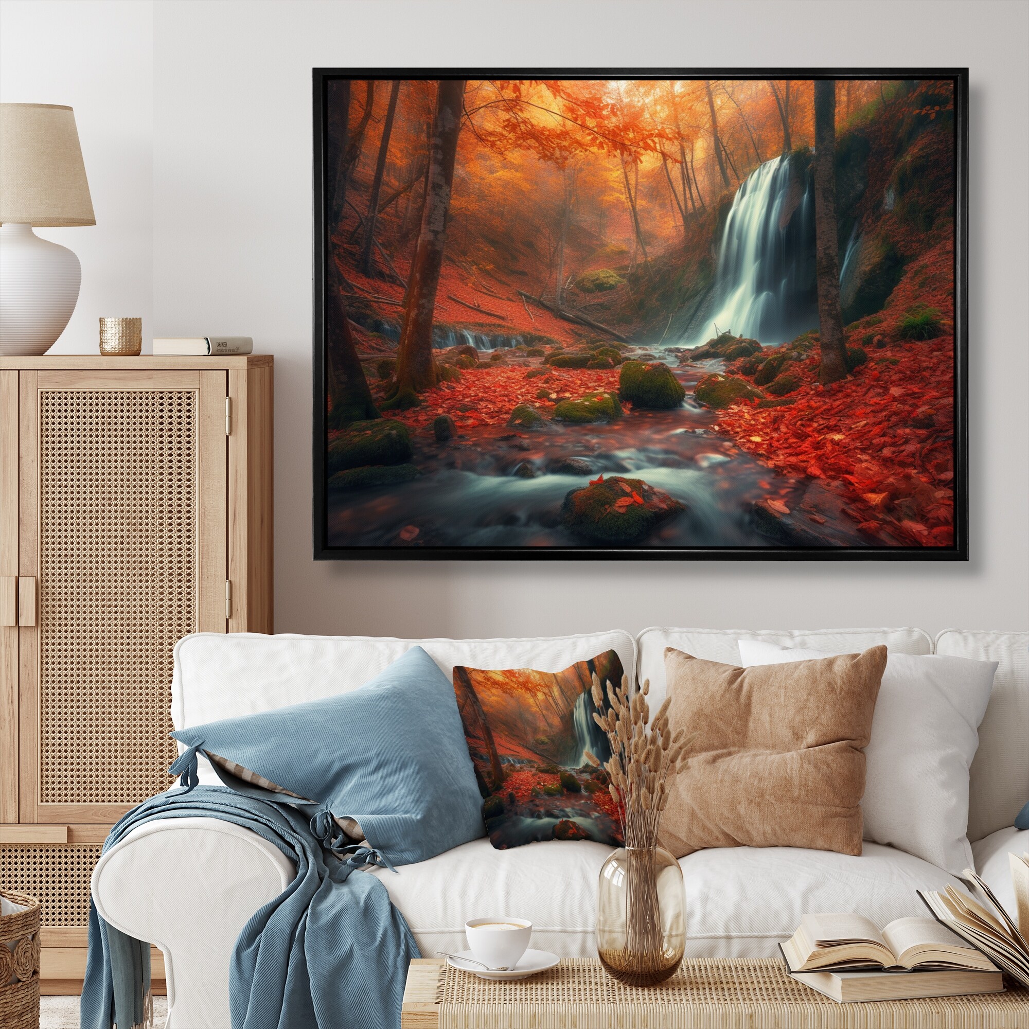 Designart "Waterfall In Fall Forest Iii" Landscape Mountains Framed Canvas Wall Art