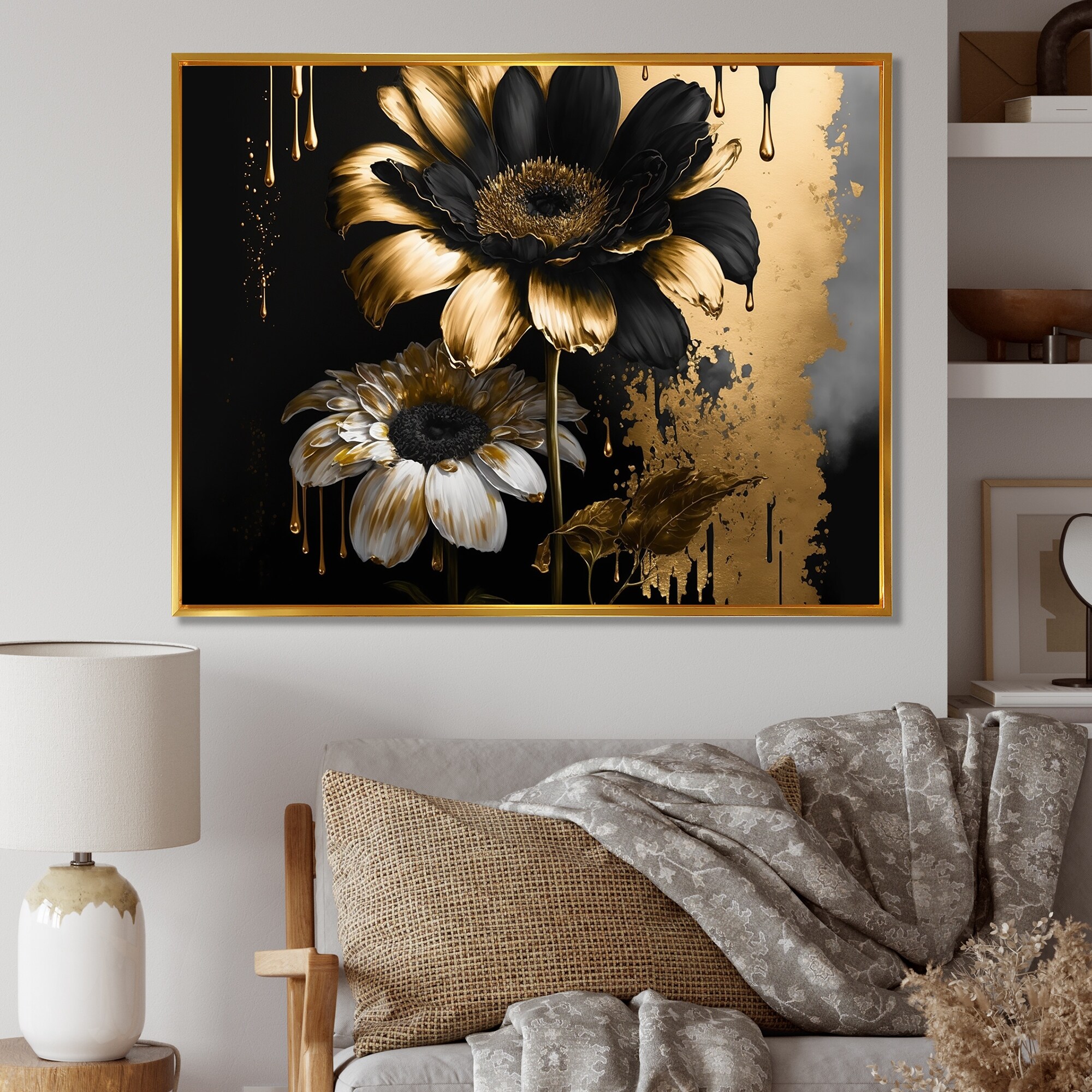 Designart "Black And Gold Daisy II" Floral & Botanical Framed Canvas Art Print