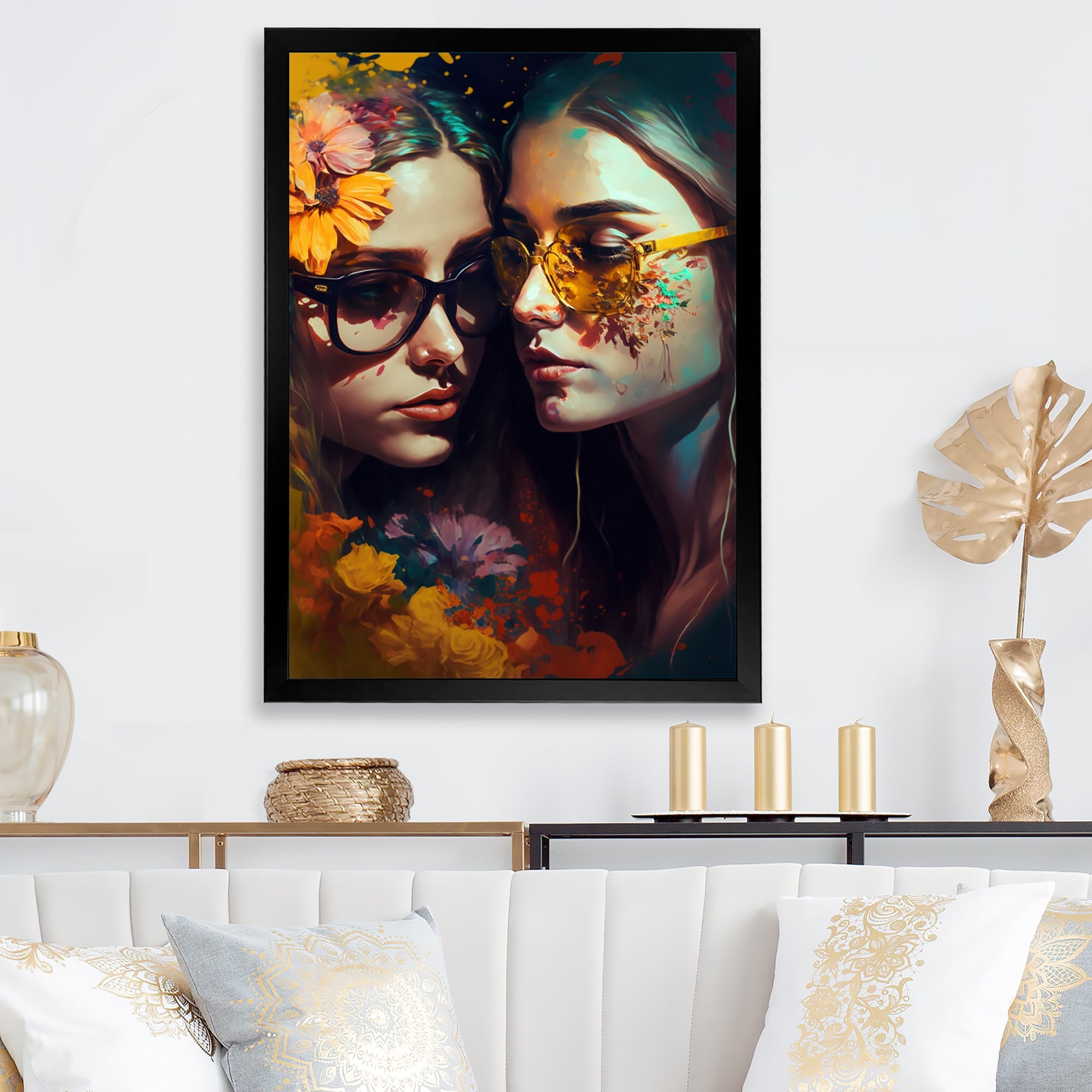 Designart "Stylish Women Kissing I" Traditional Framed Art Print
