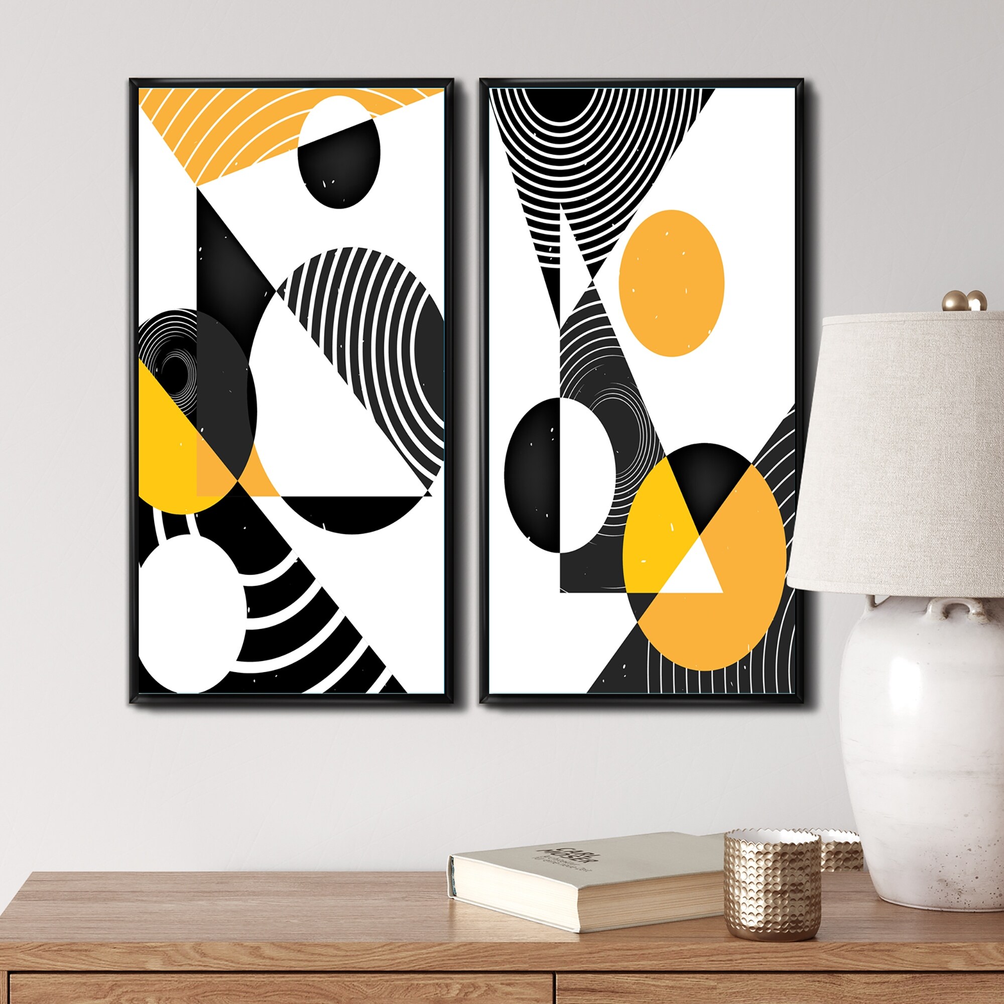 Designart "Retro Abstract Colorful Geometric Typography I" Geometric Framed Art Set of 2 Pieces