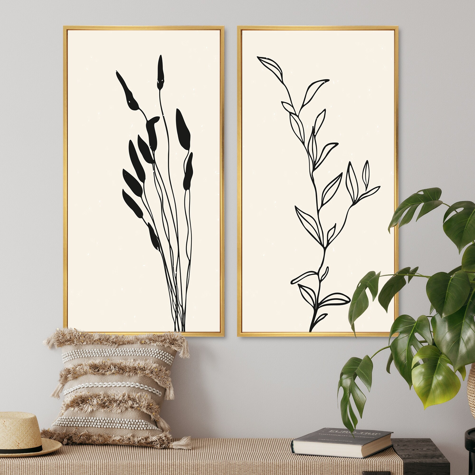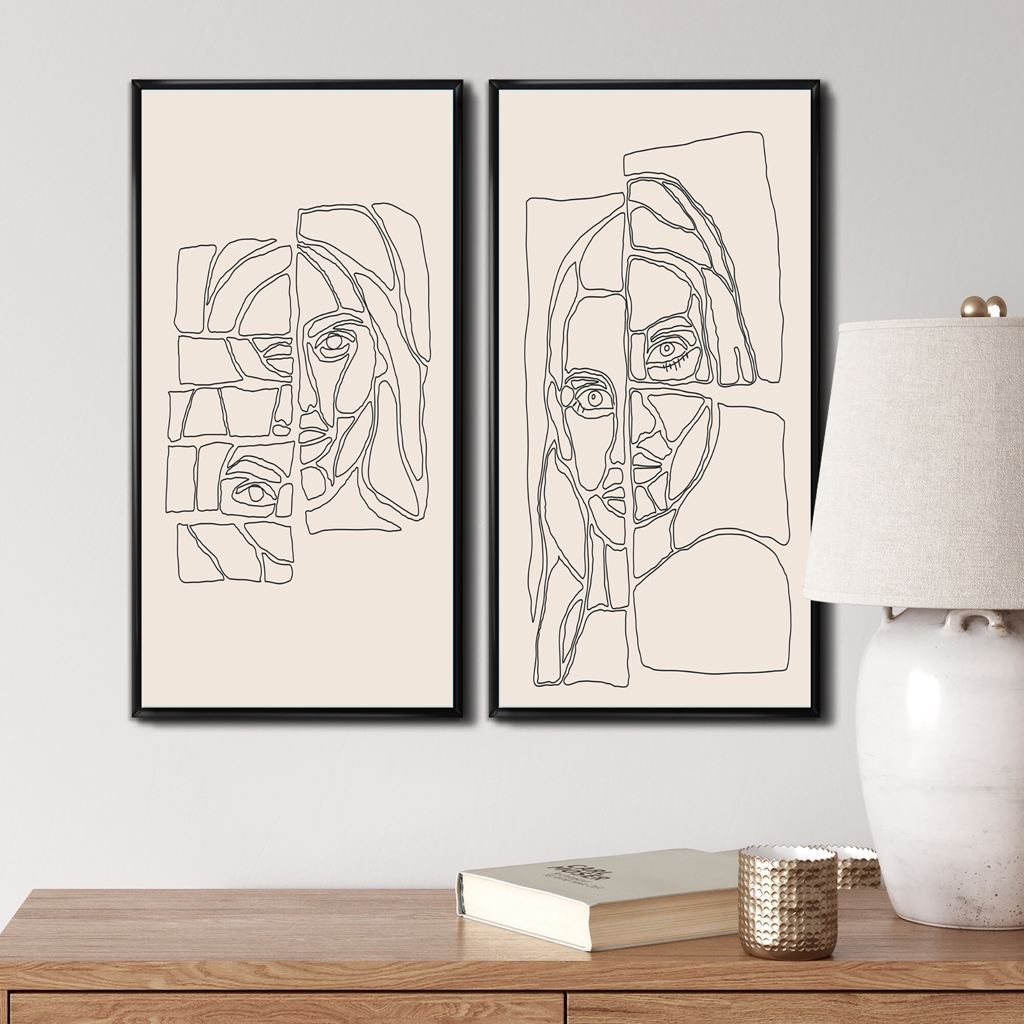 Designart "Minimalism Woman Portrait I" Portrait Framed Art Set of 2 Pieces