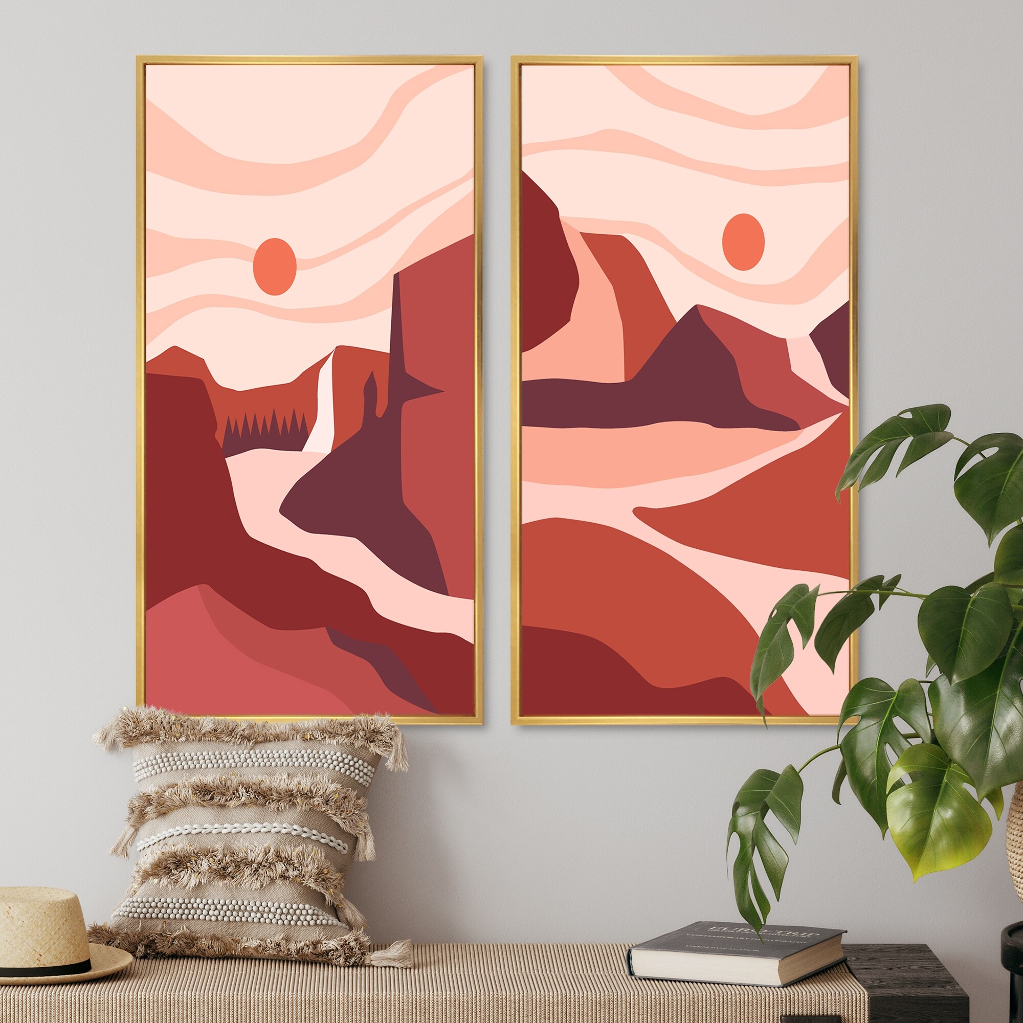 Designart "Abstract Landscape in Tones of Red And Pink I" Landscapes Framed Art Set of 2 Pieces