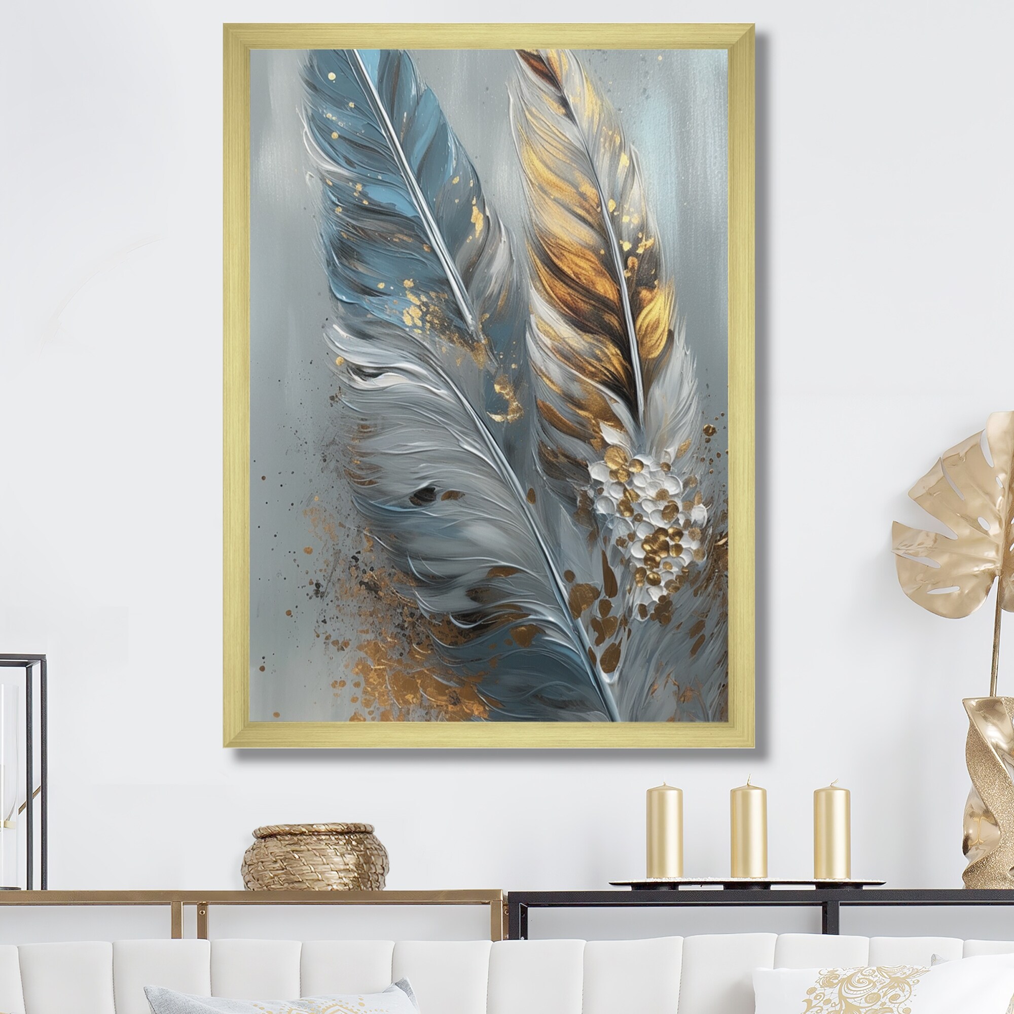 Designart "Gold Feather Wanderlust I" Glam Feather Framed Wall Art for Living Room
