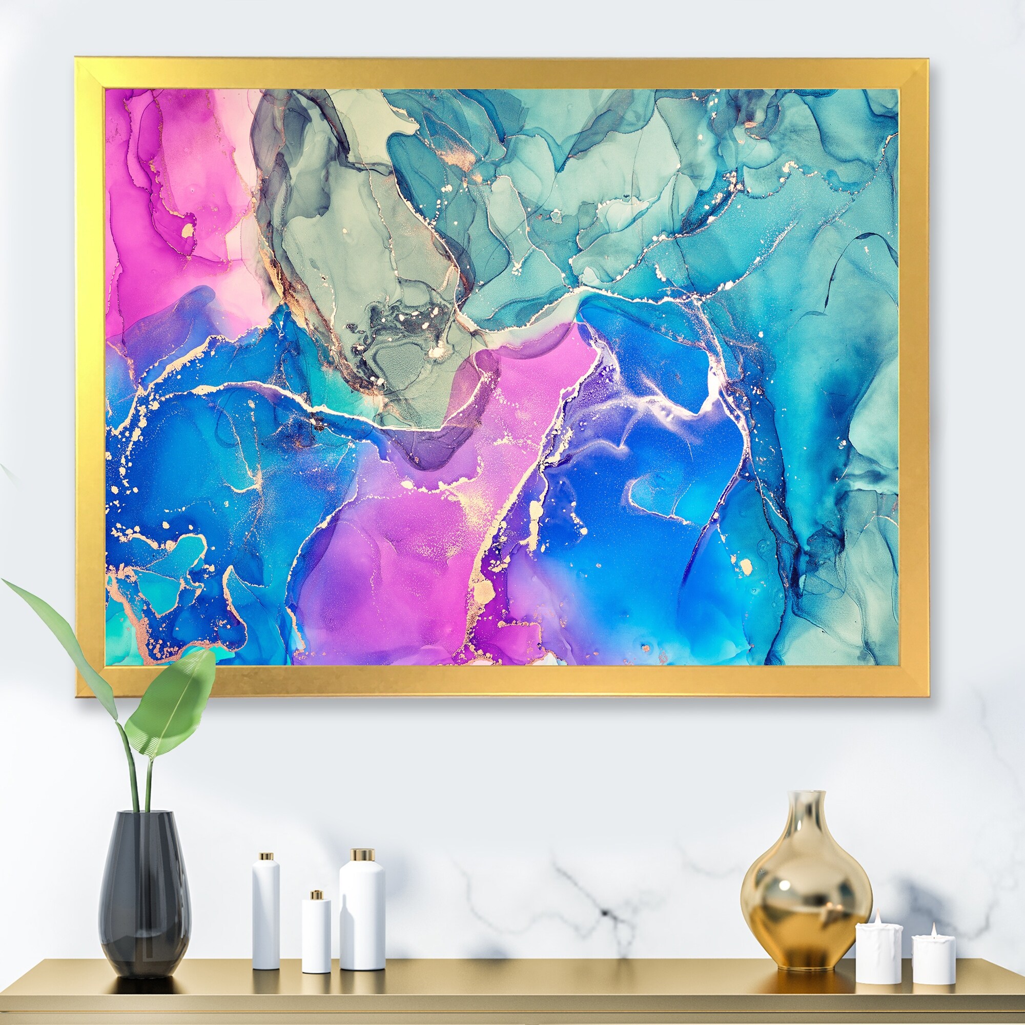 Designart "Pink And Purple Abstract Liquid Art III" Modern Framed Art Print