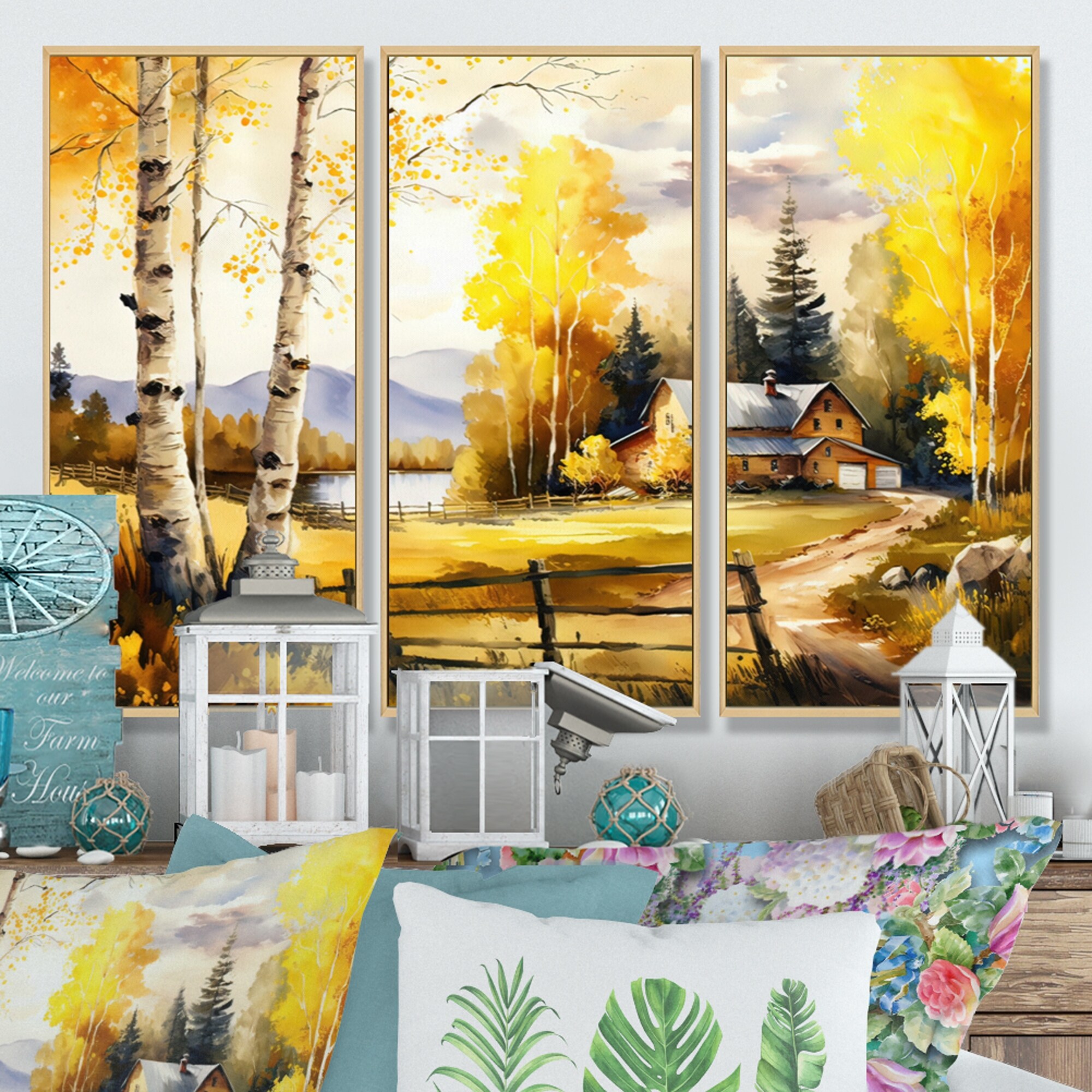 Designart "Farm Harvest Glow Pastoral I" Farm Framed Wall Art Living Room
