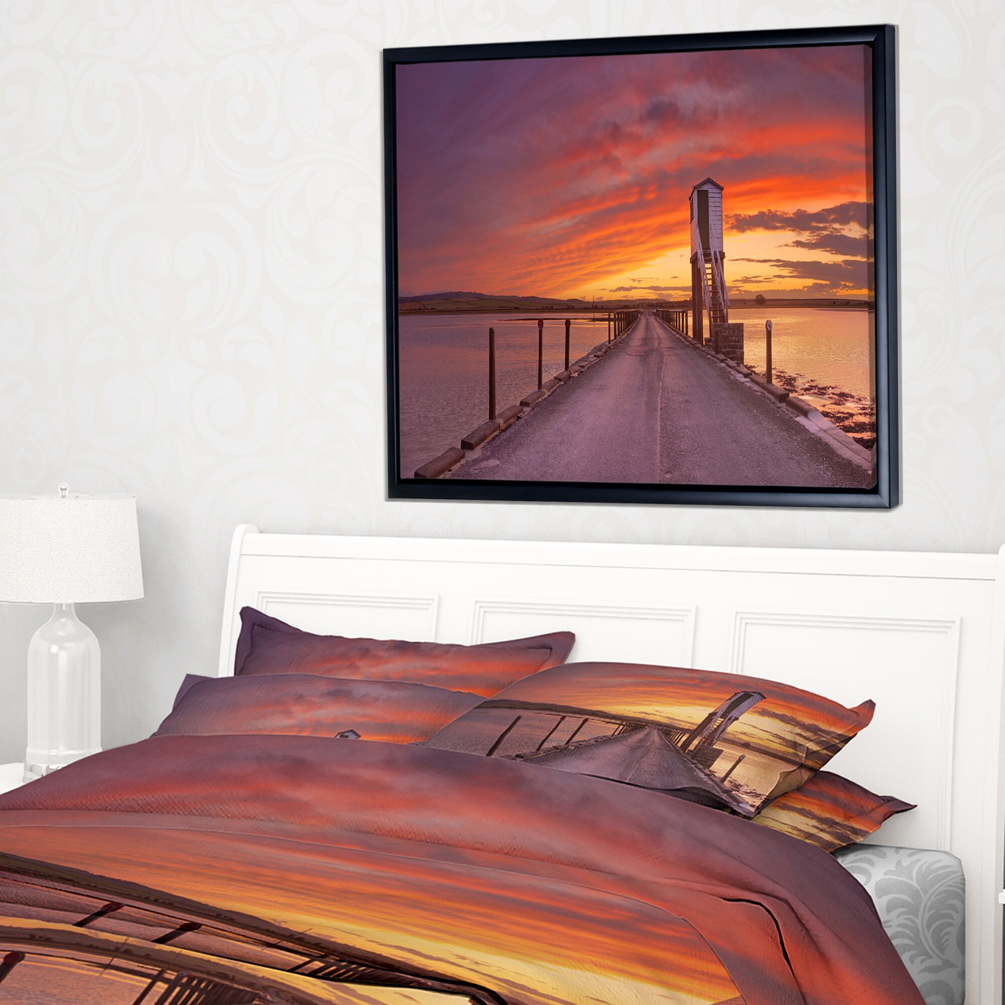 Designart "Holy Island of Lindisfarne Panorama" Wooden Sea Bridge Framed Canvas Wall Art