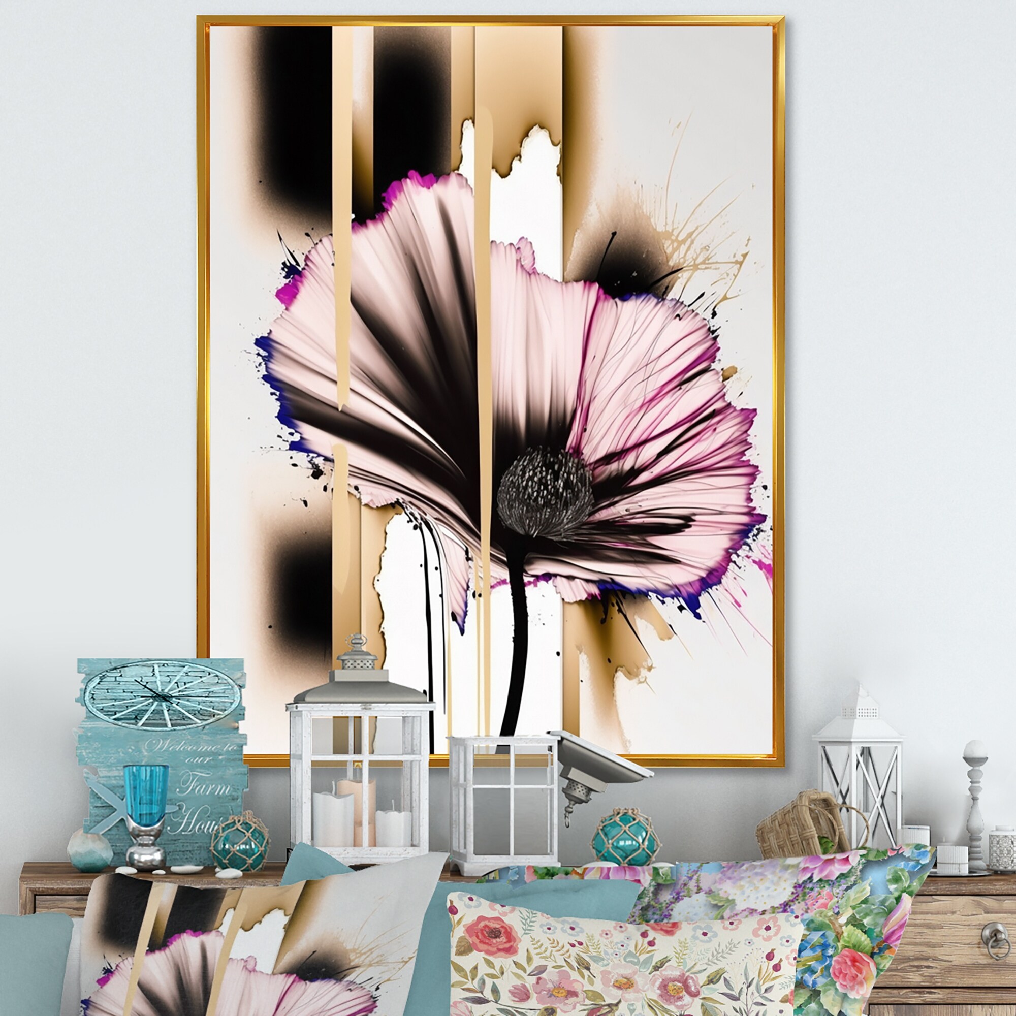 Designart "Pink Gerbera Flower on Abstract Fusion II" Floral & Botanical Framed Canvas Art Print