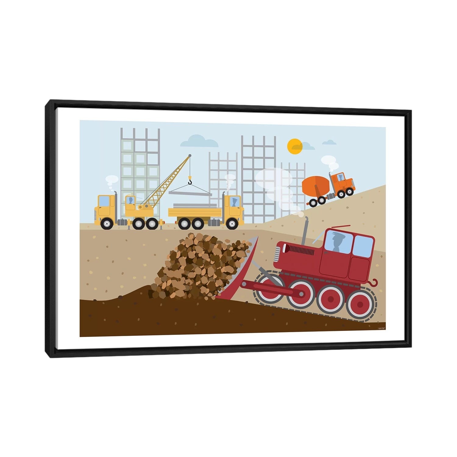 iCanvas "Stavebni Stroje II" by TomasDesign Framed
