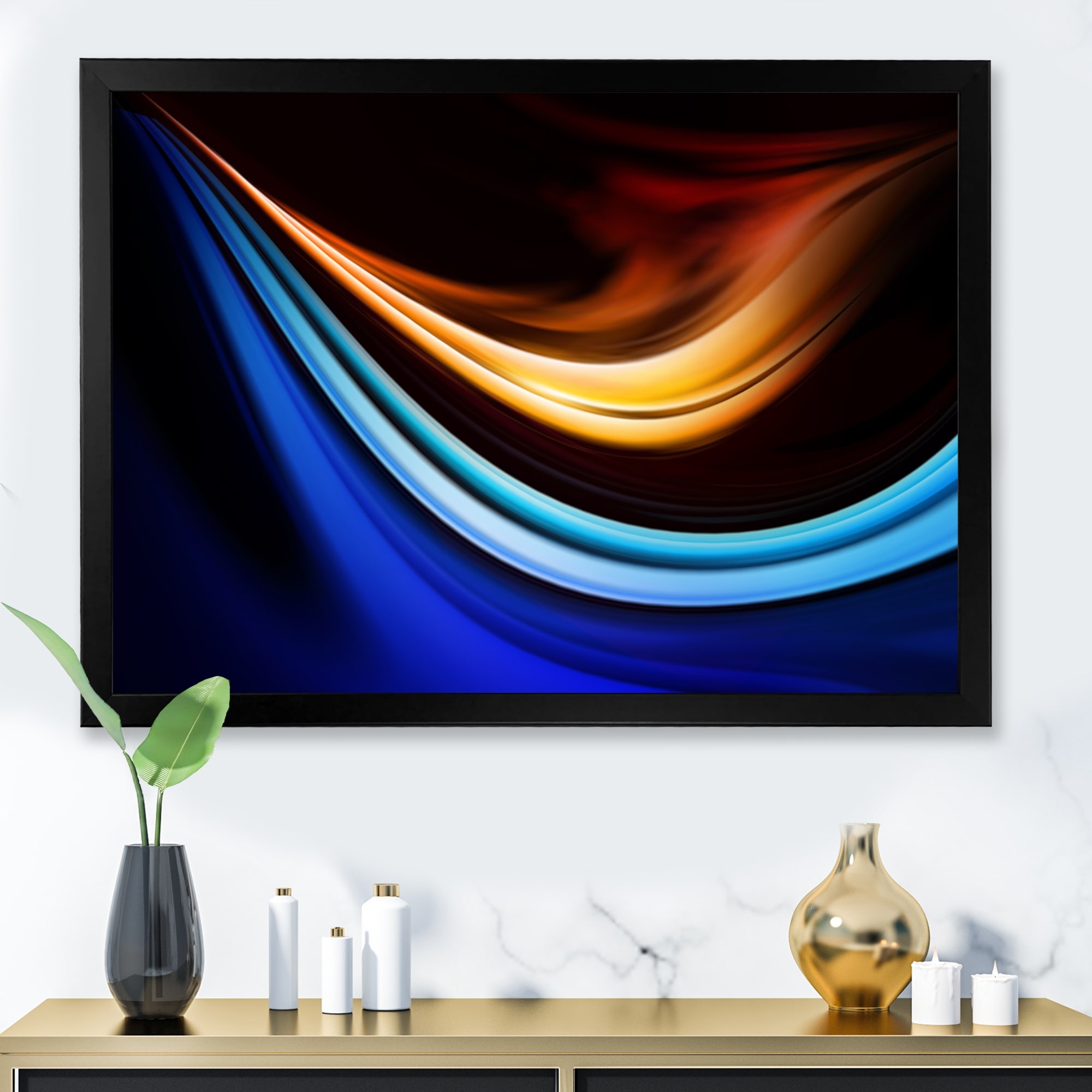 Designart "Colorful Fractal Fire And Water Fusion V" Abstract Framed artwork