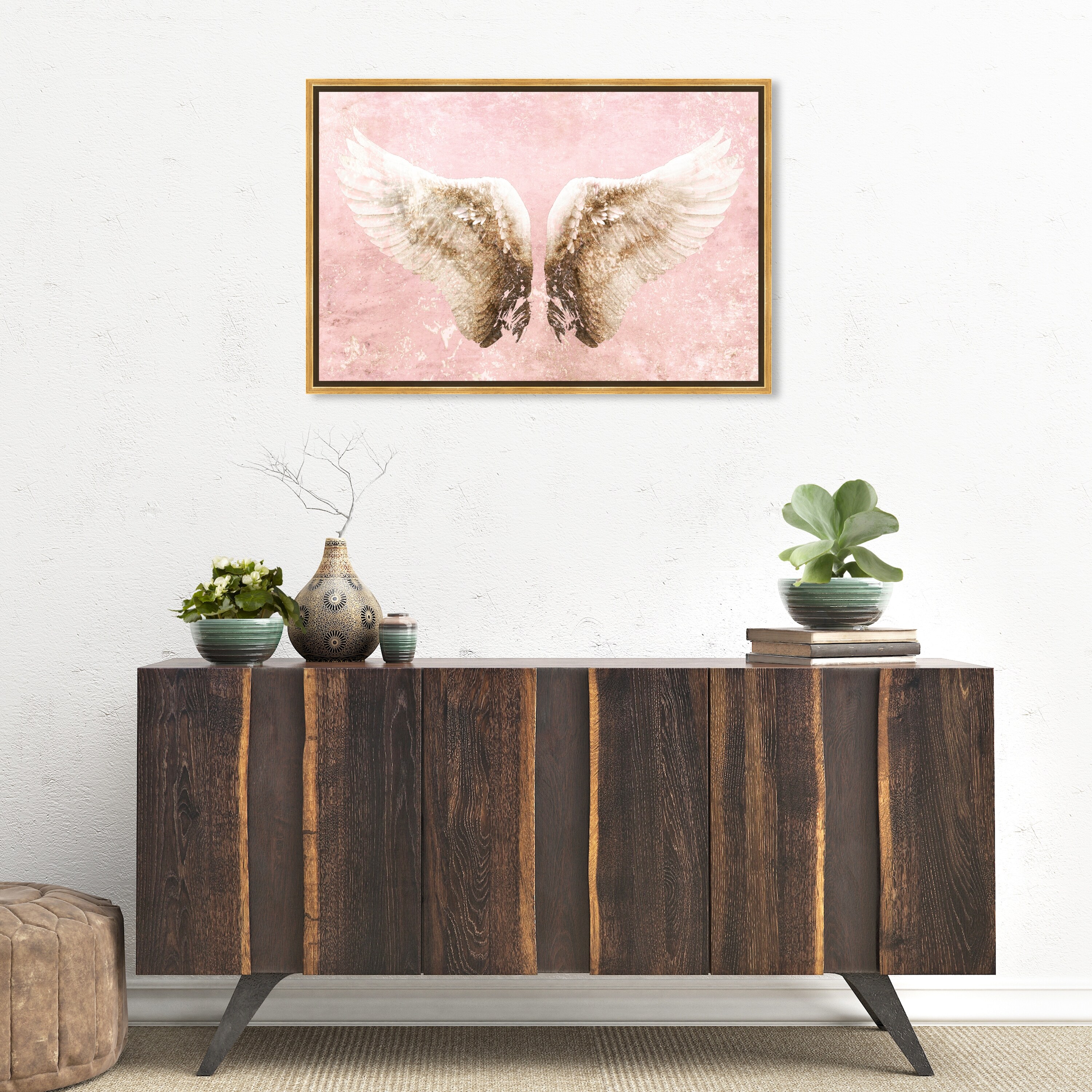 Oliver Gal 'Lets Fly Away Blush' Fashion and Glam Wall Art Framed Canvas Print Wings - Pink, White