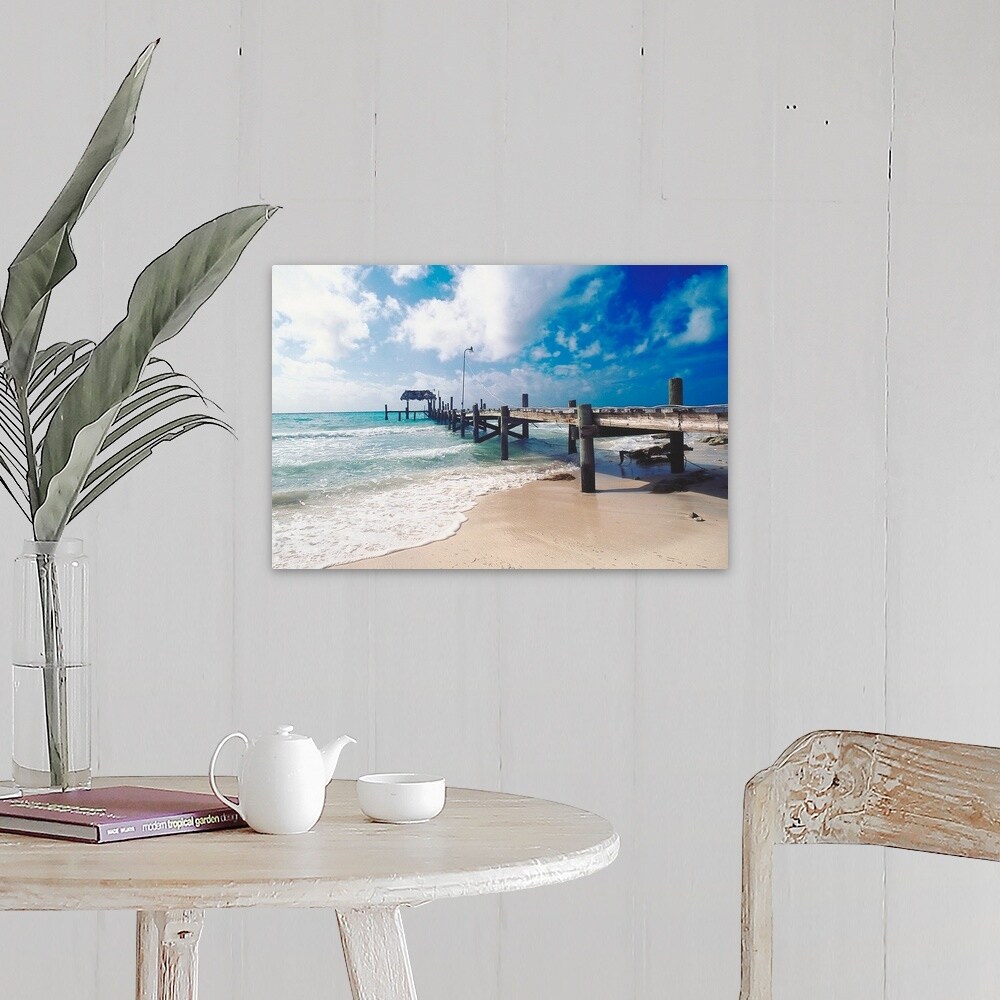 Easy Art Prints Panoramic Images's 'Pier in the sea, Bahamas' Premium Canvas Art