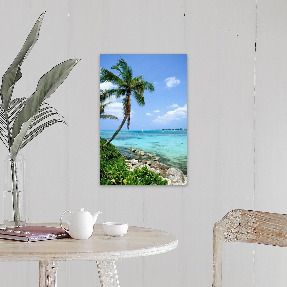 "Tropical beach with palm trees and clear blue water, Bahamas" Canvas Wall Art