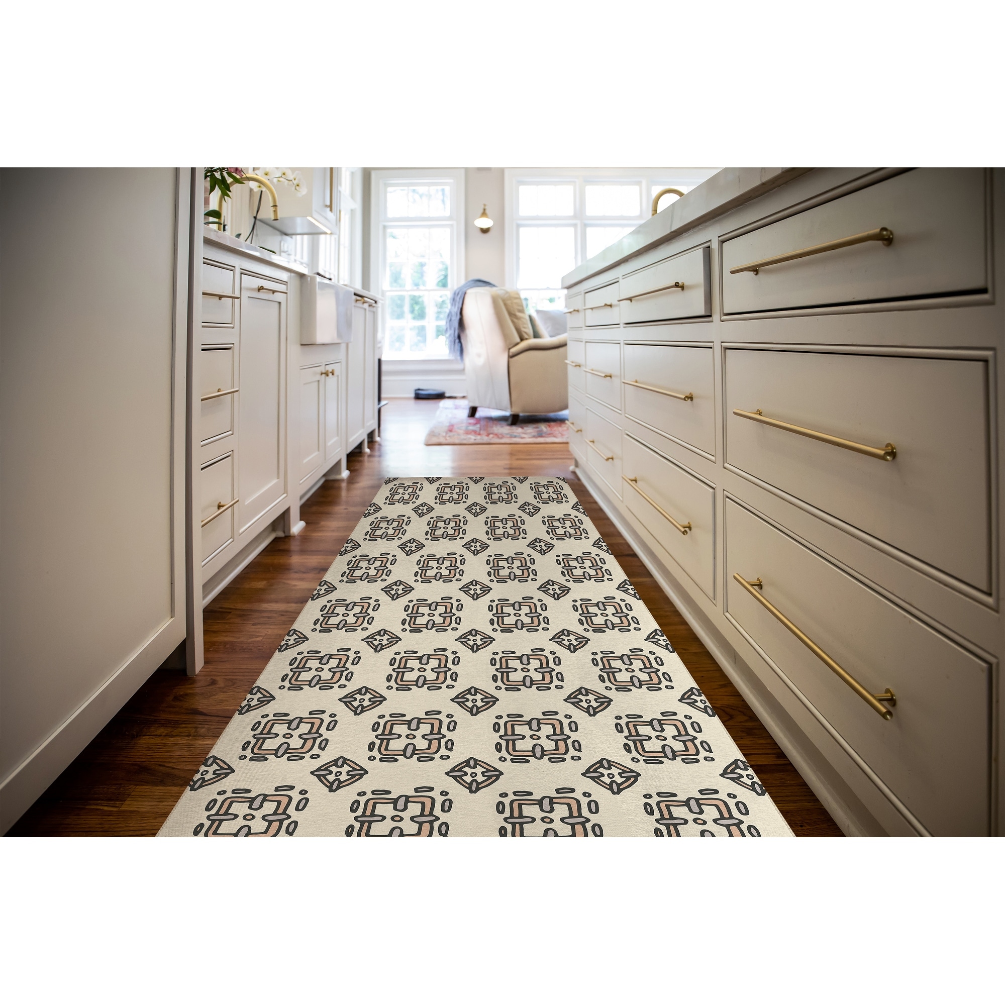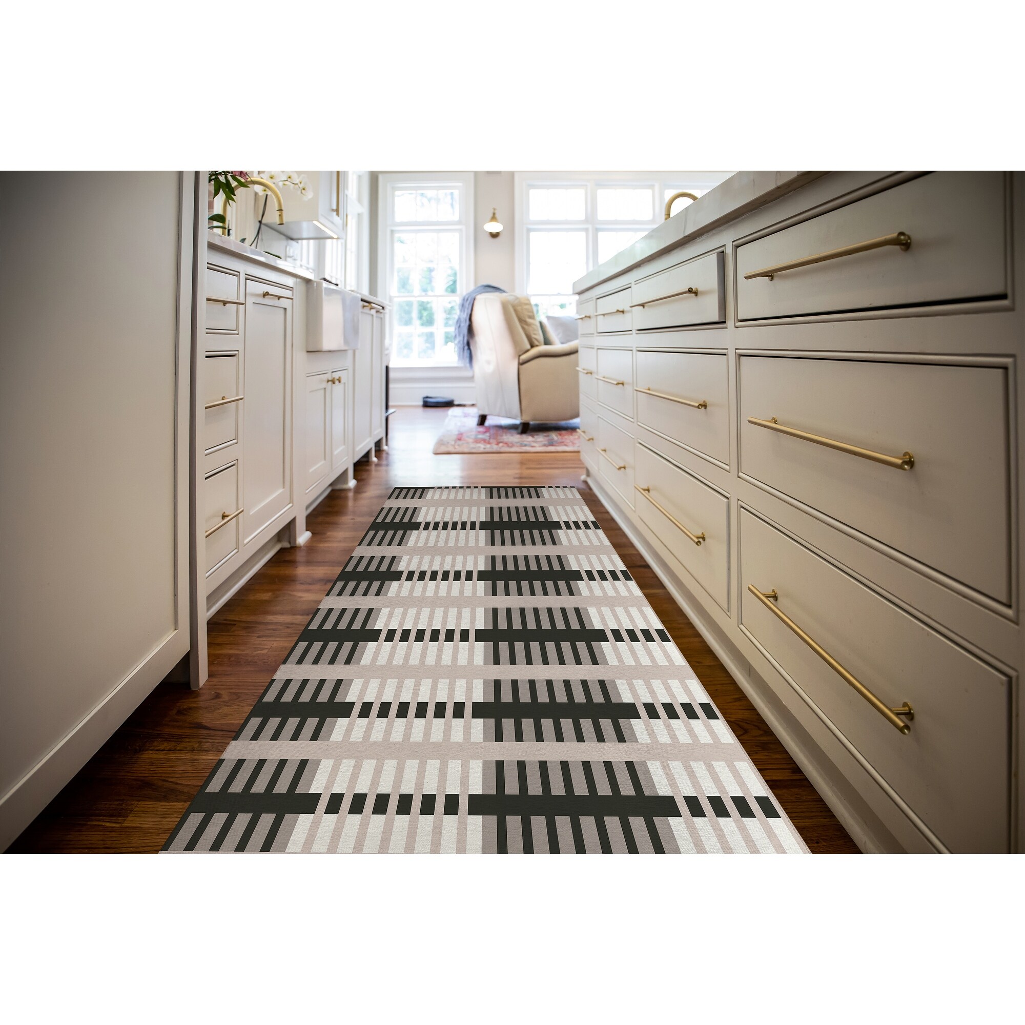GRAPHIC WEAVE CHARCOAL AND BEIGE Kitchen Mat By Becky Bailey