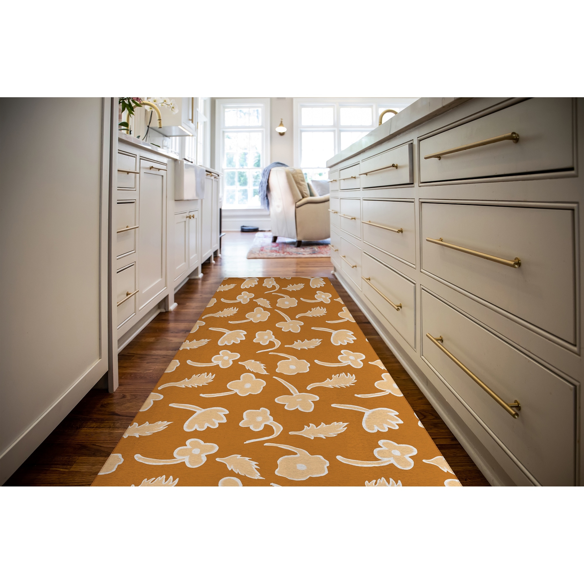 DELIA FLORAL BROWN Kitchen Mat By Becky Bailey