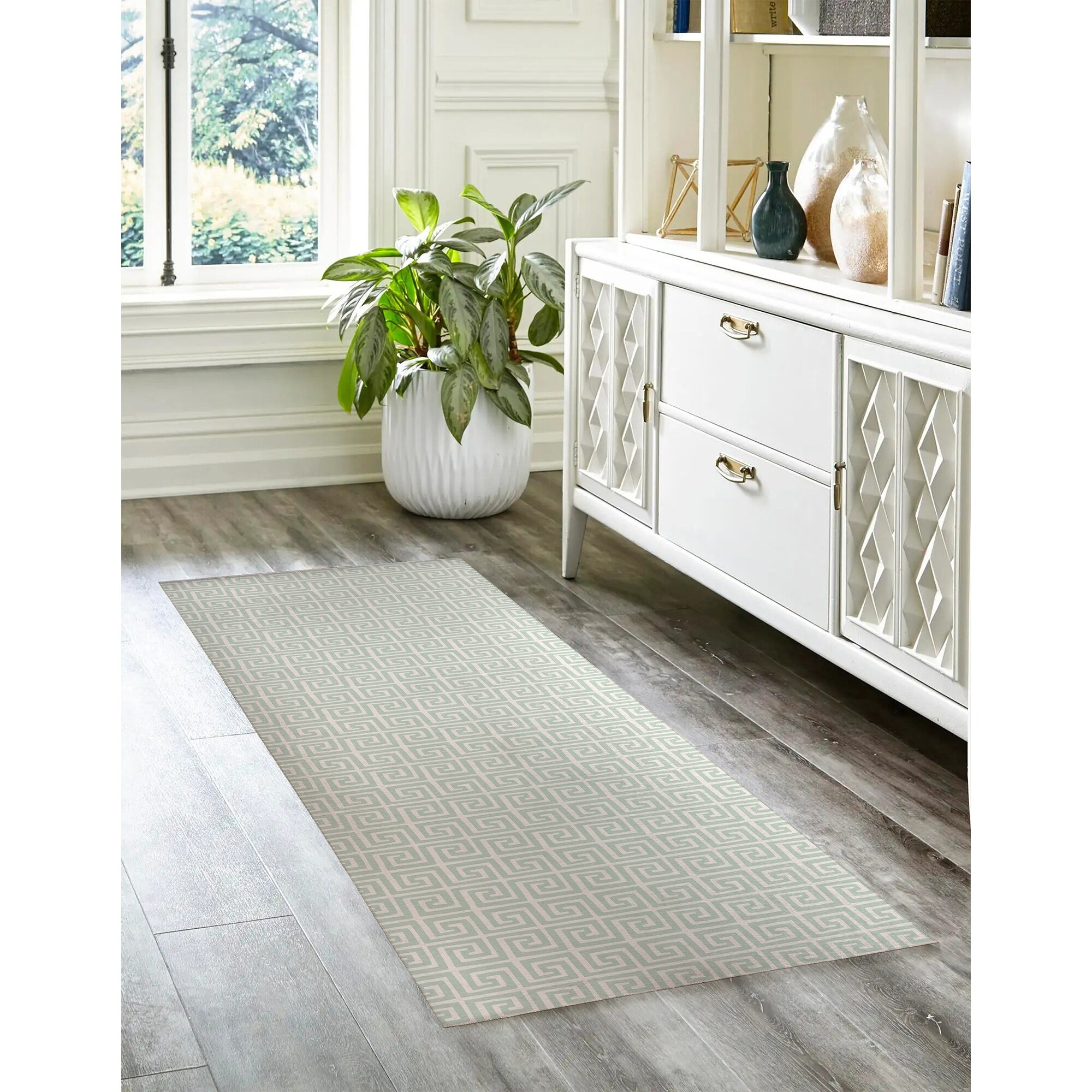 GREEK MEANDER GREEN Kitchen Mat By Becky Bailey