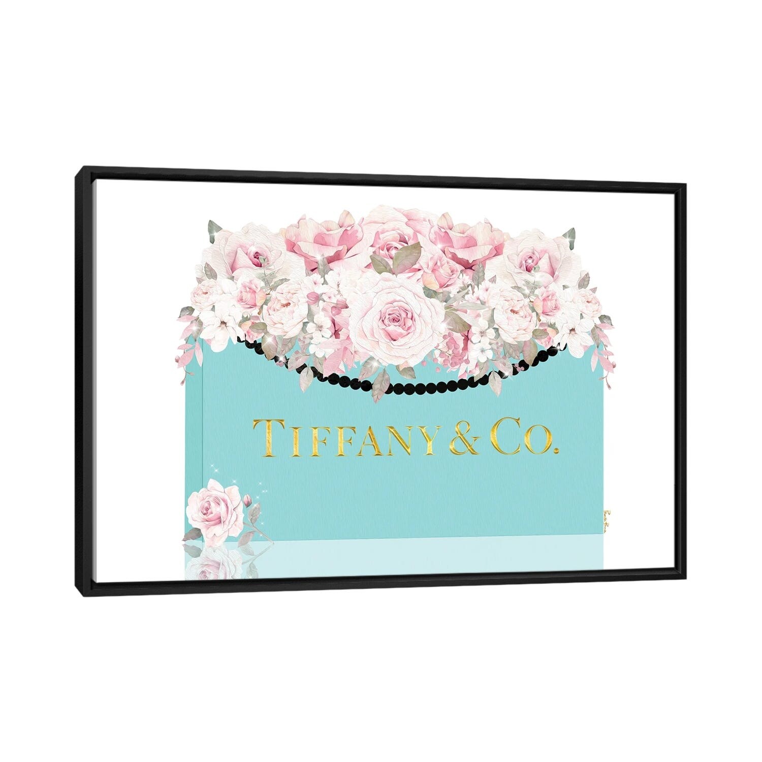 iCanvas "Teal & Gold Shopping Bag With Lightly Blushed Roses" by Pomaikai Barron Framed Canvas Print