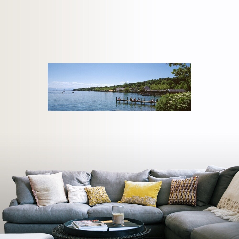 "People sitting on a jetty Lake Starnberg Starnberg Oberbayern Bavaria Germany" Poster Print - Multi