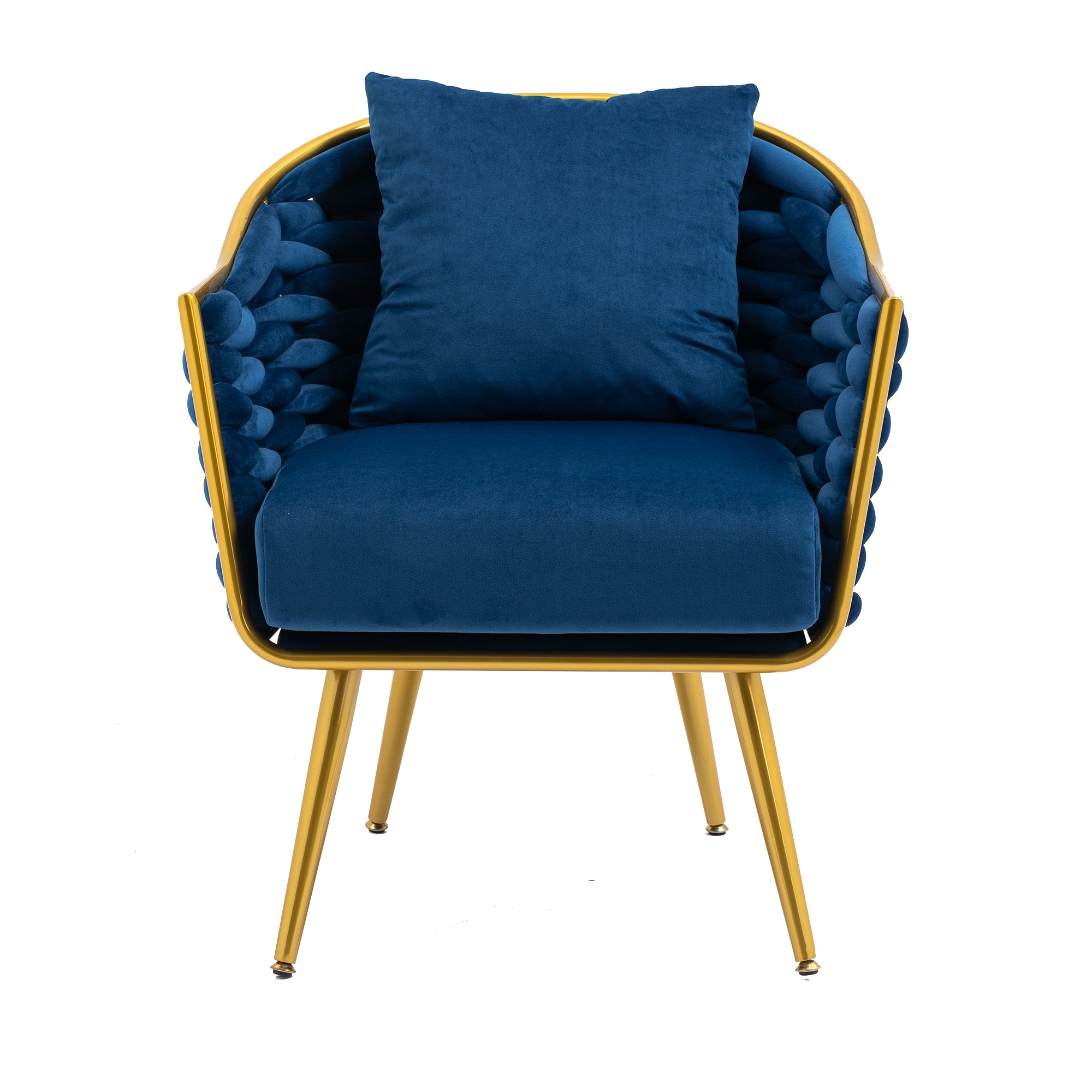 Velvet Accent Chair Handcrafted Tufting Armchair with Gold Legs & Throw Pillow, Upholstered Single Sofa for Living Room Bedroom