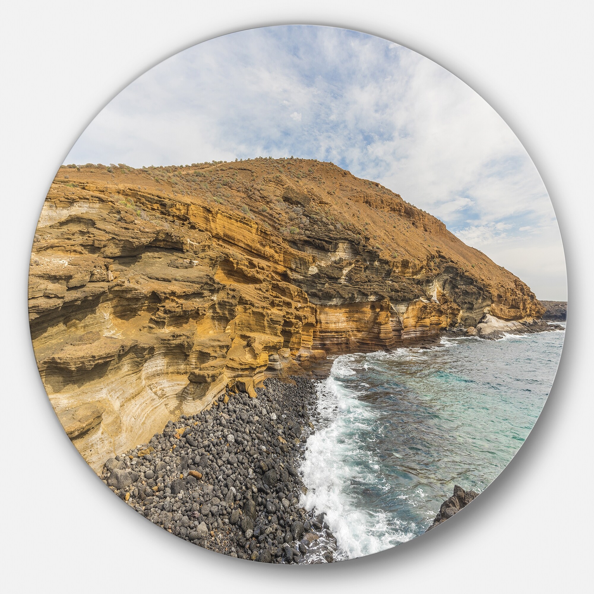 Designart 'Peninsula Going Beyond the Horizon' Contemporary Seascape Large Disc Metal Wall art