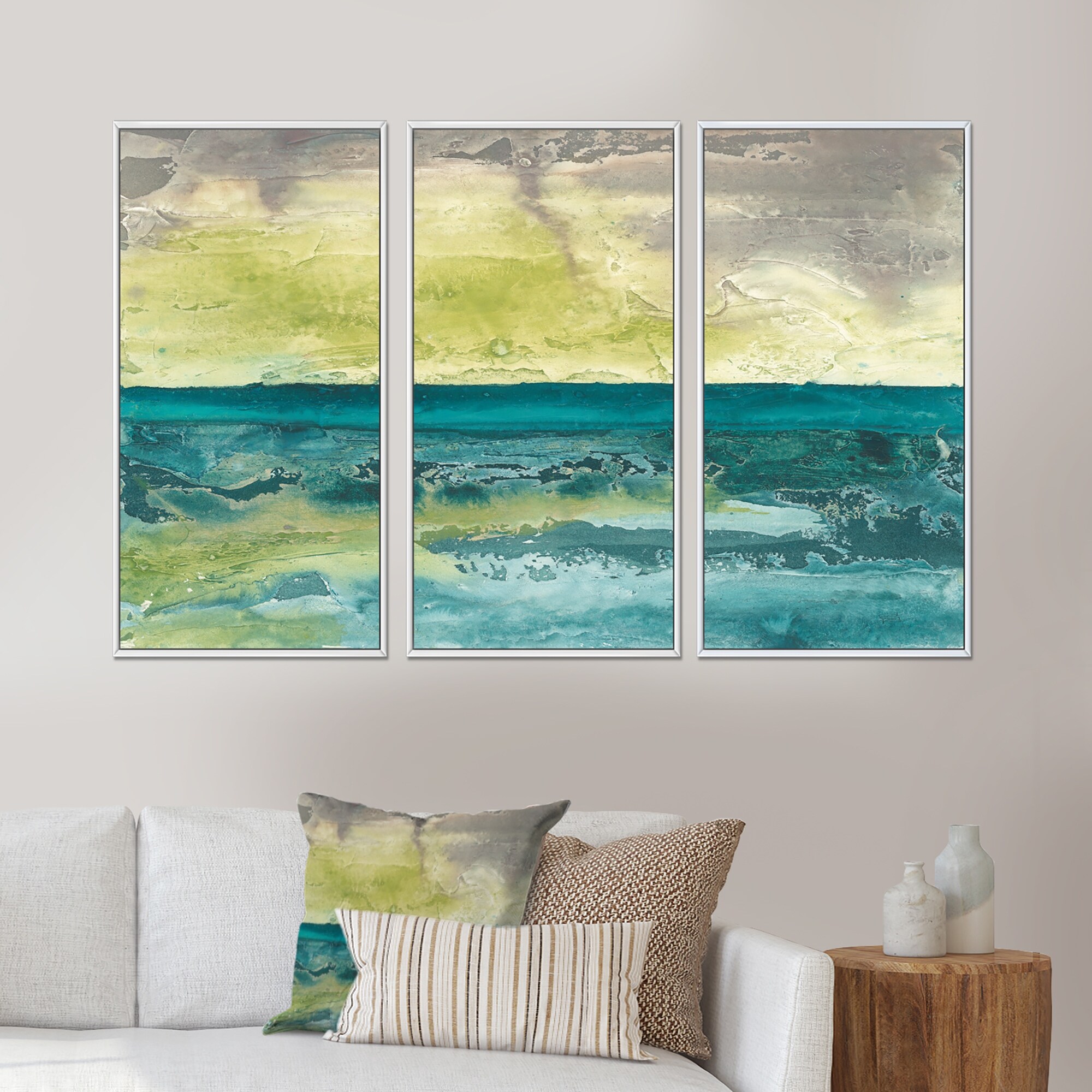 Designart "Beyond the Horizon I" Traditional Framed Canvas Wall Art Print Set of 3 - 4 Colors of Frames