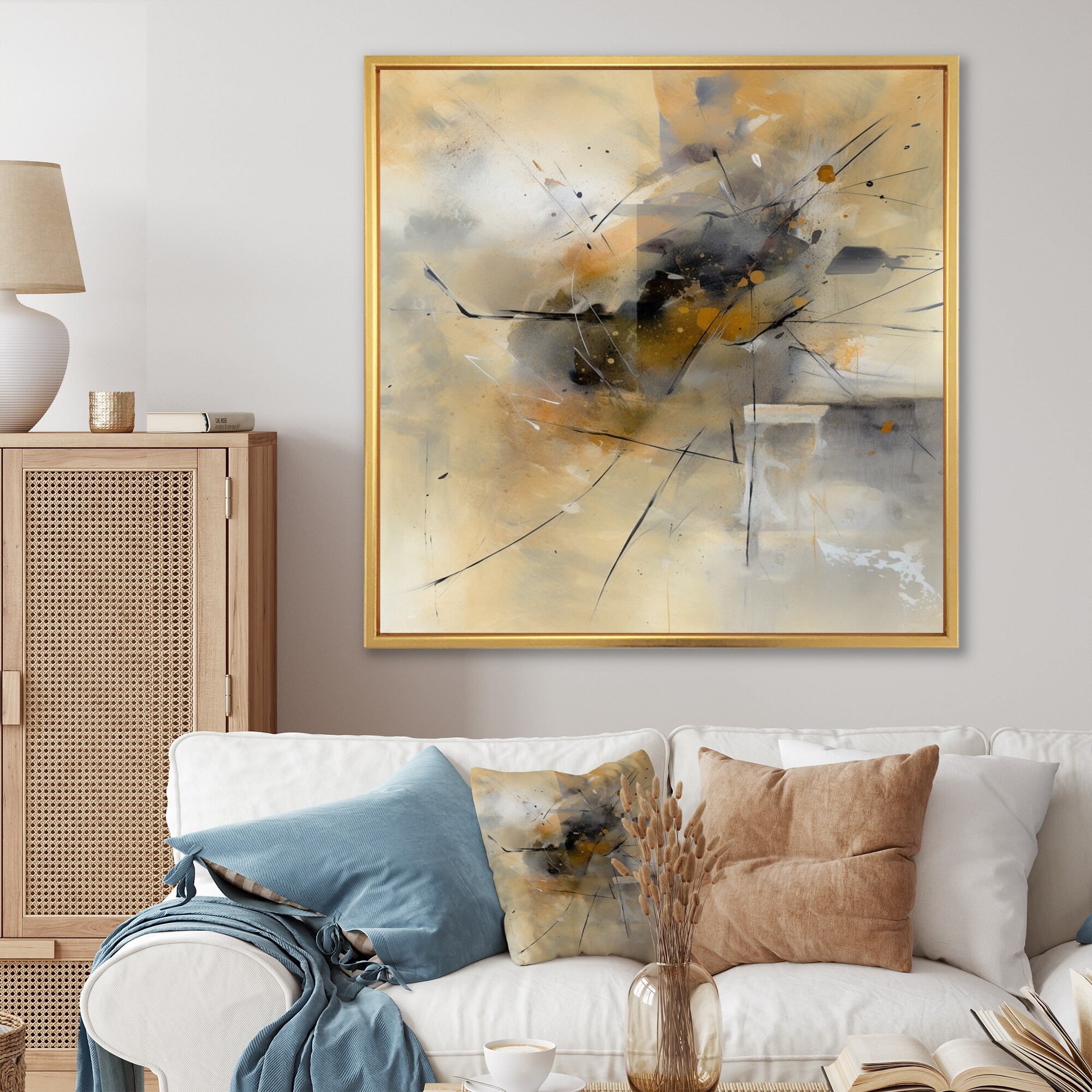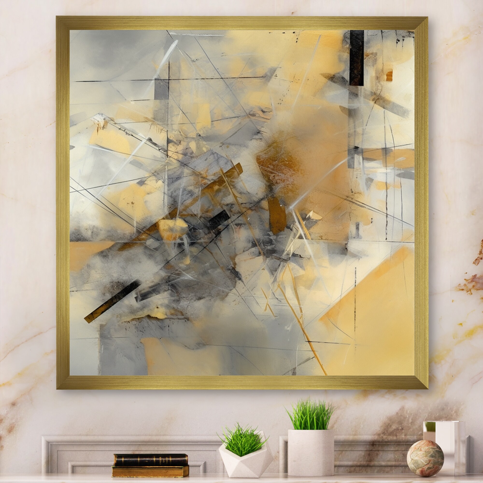 Designart "Yellow And Grey Beyond the Canvas V" Abstract Painting Framed Canvas Wall Art