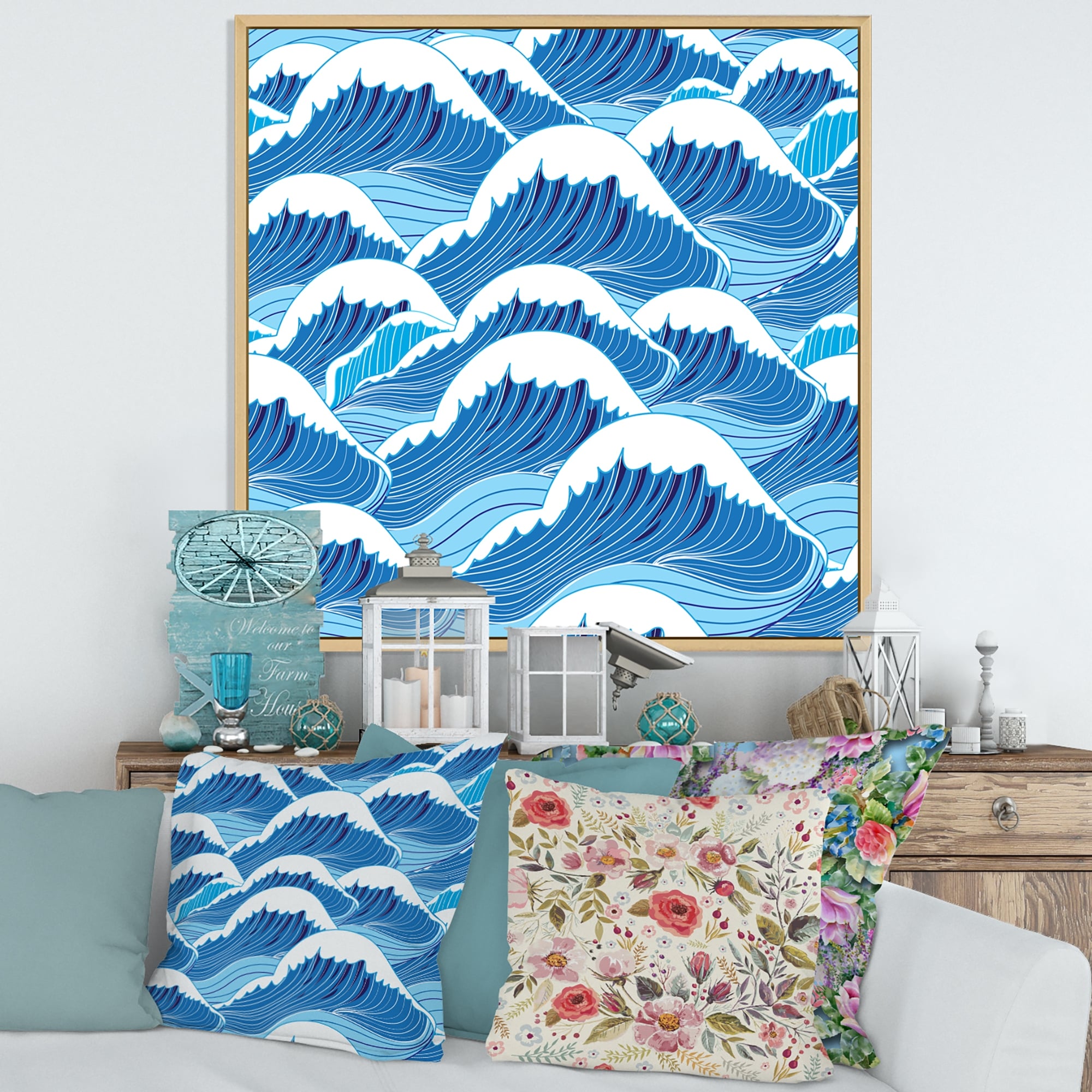 Designart "Abstract Light Blue Sea Waves" Nautical & Coastal Framed Canvas Wall Art Print