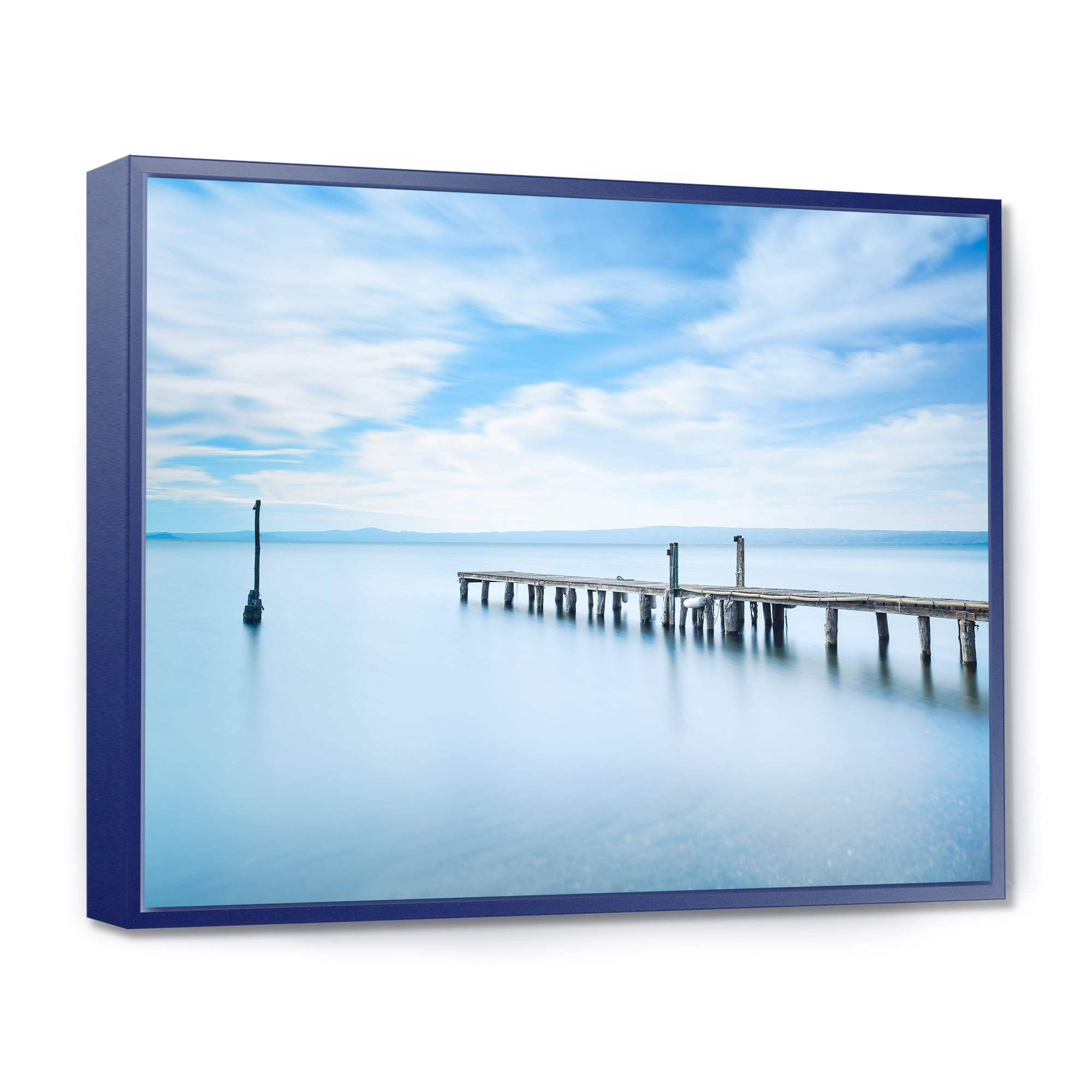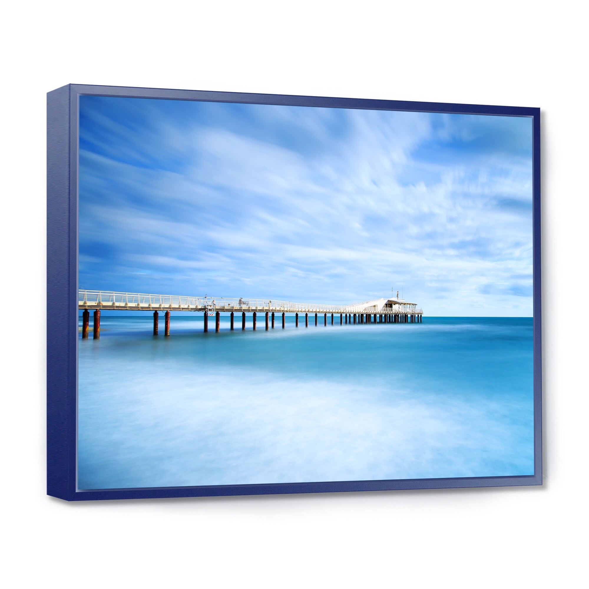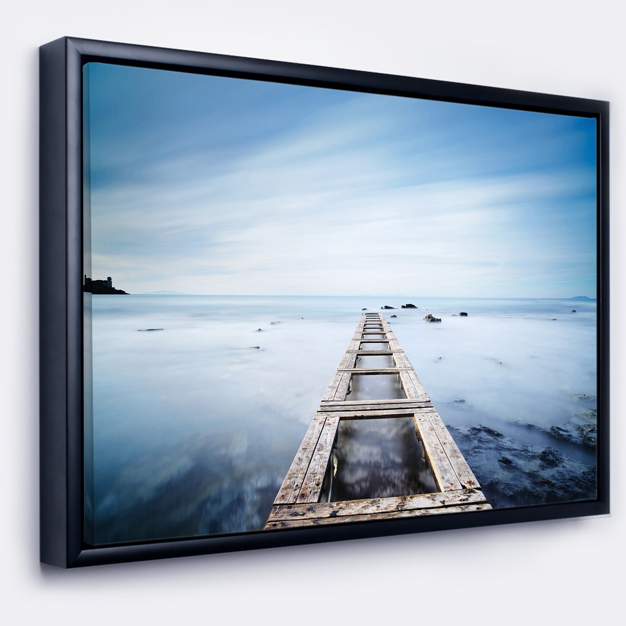 Designart "Pier Infinite to Blue Sea" Seascape Framed Canvas Art Print