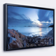 Designart "Blue Sea in Between Big Rocks" Extra Large Seashore Framed Canvas Art